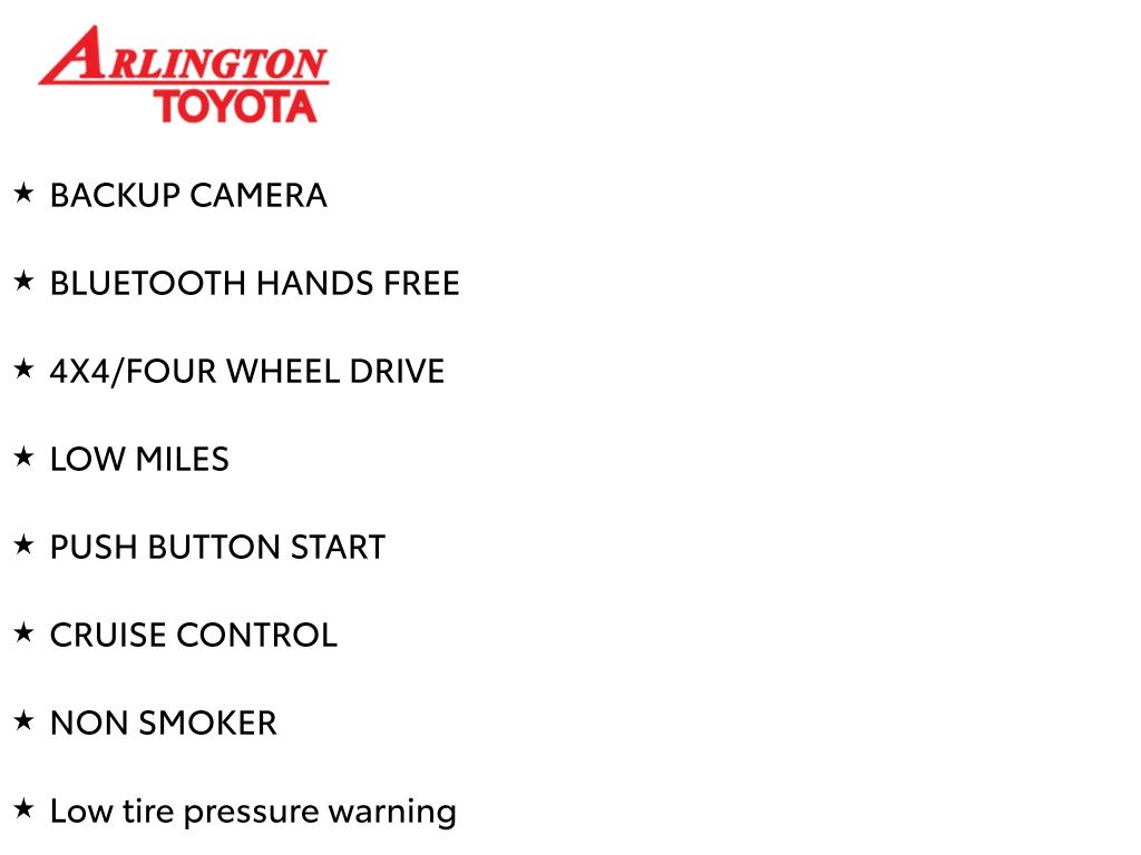 Prices do not include tax, tag, title, a pre-delivery service fee* of $894.00, an electronic registration filing fee* of $199.00 (*these charges represent costs and profits to the dealer for items such as inspecting, cleaning, and preparing documents related to the sale), and an Arlington Toyota Total Value Package of $1,889.00 (*these charges represent costs and profits to the dealer for items such as inspecting, cleaning, and preparing documents related to the sale). The final price is also subject to repair order reconditioning costs. Any price does not include dealer-installed accessories. All offers are mutually exclusive. All vehicles are subject to prior sale. See dealer for complete details.