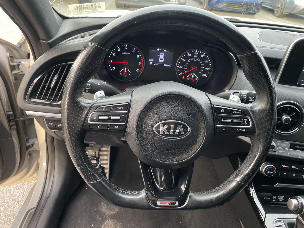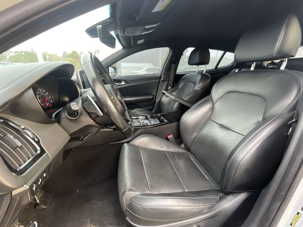 BACKUP CAMERA, BLUETOOTH HANDS FREE, ANDROID AUTO, APPLE CARPLAY, POWER SEATS, TURBOCHARGED, PUSH BUTTON START, CRUISE CONTROL, NON SMOKER, Stinger GT-Line, 4D Sedan, 2.0L I4 Turbocharged DOHC 16V LEV3-ULEV125 255hp, 8-Speed Automatic, RWD, Ceramic Silver, Black Leather, ABS brakes, Electronic Stability Control, Fully automatic headlights, Low tire pressure warning, 4-Wheel Disc Brakes, 6 Speakers, Air Conditioning, Alloy Door Sill Plate, Alloy wheels, AM/FM radio: SiriusXM, Anti-whiplash front head restraints, Apple CarPlay & Android Auto, Auto-dimming Rear-View mirror, Automatic temperature control, Brake assist, Bumpers: body-color, Delay-off headlights, Driver door bin, Driver vanity mirror, Dual front impact airbags, Dual front side impact airbags, EC Mirror w/Compass & HomeLink, Exterior Parking Camera Rear, Four wheel independent suspension, Front anti-roll bar, Front Bucket Seats, Front Center Armrest, Front dual zone A/C, Front reading lights, Heated door mirrors, Heated Front Bucket Seats, Heated front seats, Illuminated entry, Knee airbag, Leather Seat Trim, Mud Guards, Occupant sensing airbag, Outside temperature display, Overhead airbag, Overhead console, Panic alarm, Passenger door bin, Passenger vanity mirror, Power door mirrors, Power driver seat, Power steering, Power windows, Puddle Lamp, Radio: AM/FM/MP3/HD/SiriusXM Audio System, Rear air conditioning, Rear anti-roll bar, Rear Bumper Applique, Rear seat center armrest, Rear window defroster, Remote keyless entry, Security system, Speed control, Speed-Sensitive Wipers, Split folding rear seat, Sport steering wheel, Steering wheel mounted audio controls, Tachometer, Telescoping steering wheel, Tilt steering wheel, Traction control, Trip computer, Turn signal indicator mirrors, Variably intermittent wipers, Wheels: 8.0J x 18 Alloy, Stinger GT-Line, 4D Sedan, 2.0L I4 Turbocharged DOHC 16V LEV3-ULEV125 255hp, 8-Speed Automatic, RWD, Ceramic Silver, Black Leather, ABS brakes, Electronic Stability Control, Fully automatic headlights, Low tire pressure warning.