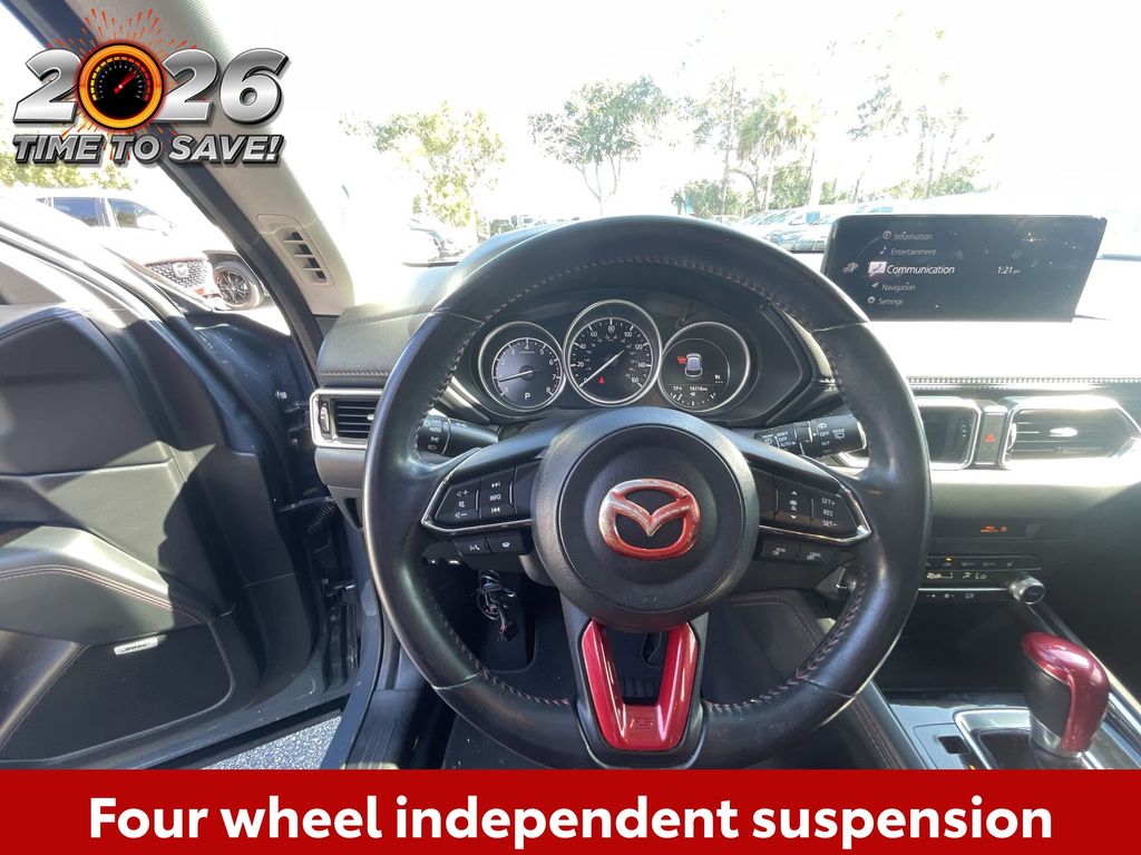 BACKUP CAMERA, BLUETOOTH HANDS FREE, ANDROID AUTO, APPLE CARPLAY, POWER SEATS, SUNROOF/MOONROOF, PUSH BUTTON START, CRUISE CONTROL, NON SMOKER, CX-5 Carbon Edition Turbo, 4D Sport Utility, 2.5L I4, 6-Speed Automatic, FWD, Polymetal Gray, Red Leather, ABS brakes, Electronic Stability Control, Four wheel independent suspension, Front dual zone A/C, Fully automatic headlights, Low tire pressure warning, Power windows, Steering wheel mounted audio controls, Turn signal indicator mirrors, 10 Speakers, 4-Wheel Disc Brakes, 4.411 Axle Ratio, Air Conditioning, Alloy wheels, AM/FM radio, AppLink/Apple CarPlay and Android Auto, Auto High-beam Headlights, Auto-dimming Rear-View mirror, Automatic temperature control, Bose 10-Speaker Premium Audio Sound System, Brake assist, Bumpers: body-color, Delay-off headlights, Driver door bin, Driver vanity mirror, Dual front impact airbags, Dual front side impact airbags, Exterior Parking Camera Rear, Front anti-roll bar, Front Bucket Seats, Front Center Armrest, Front reading lights, Garage door transmitter: HomeLink, Heated Front Bucket Seats, Heated front seats, Illuminated entry, Leather Seat Trim, Leather Shift Knob, Memory seat, Occupant sensing airbag, Outside temperature display, Overhead airbag, Overhead console, Panic alarm, Passenger door bin, Passenger vanity mirror, Power door mirrors, Power driver seat, Power Liftgate, Power moonroof, Power passenger seat, Power steering, Radio data system, Radio: AM/FM/HD Audio System, Rain sensing wipers, Rear anti-roll bar, Rear reading lights, Rear seat center armrest, Rear window defroster, Rear window wiper, Remote keyless entry, Speed control, Speed-sensing steering, Split folding rear seat, Spoiler, Tachometer, Telescoping steering wheel, Tilt steering wheel, Traction control, Trip computer, Variably intermittent wipers, Wheels: 19" x 7J Aluminum Alloy, CX-5 Carbon Edition Turbo, 4D Sport Utility, 2.5L I4, 6-Speed Automatic, FWD, Polymetal Gray, Red Leather, ABS brakes, Electronic Stability Control, Four wheel independent suspension, Front dual zone A/C, Fully automatic headlights, Low tire pressure warning, Power windows, Steering wheel mounted audio controls, Turn signal indicator mirrors.