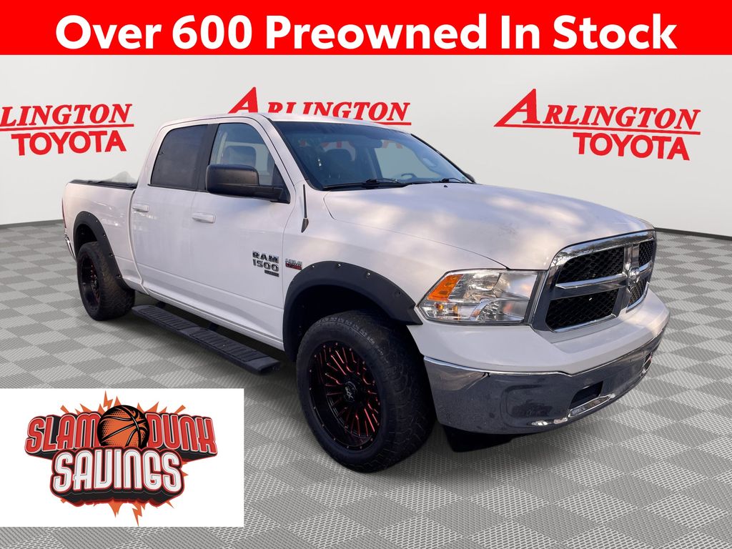 BACKUP CAMERA, BLUETOOTH HANDS FREE, ANDROID AUTO, APPLE CARPLAY, RUNNING BOARDS, PUSH BUTTON START, CRUISE CONTROL, NON SMOKER, 1500 Classic SLT, 4D Crew Cab, HEMI 5.7L V8 Multi Displacement VVT, 8-Speed Automatic, RWD, Bright White Clearcoat, Black Cloth, ABS brakes, Electronic Stability Control, Fully automatic headlights, Low tire pressure warning, 17" x 7" Aluminum Wheels, 3.21 Rear Axle Ratio, 4-Wheel Disc Brakes, 40/20/40 Split Bench Seat, 6 Speakers, Active Grille Shutters, Air Conditioning, Alloy wheels, AM/FM radio: SiriusXM, Black Exterior Mirrors, Brake assist, Bumpers: chrome, Center Hub, Cloth 40/20/40 Bench Seat, Compass, Delay-off headlights, Driver door bin, Dual front impact airbags, Dual front side impact airbags, Electronic Shift, Electronically Controlled Throttle, Engine Oil Heat Exchanger, Exterior Mirrors w/Heating Element, Front anti-roll bar, Front Armrest w/3 Cupholders, Front Center Armrest w/Storage, Front License Plate Bracket, Front reading lights, Front wheel independent suspension, GPS Antenna Input, Heated door mirrors, Heavy-Duty Engine Cooling, HEMI Badge, Illuminated entry, Integrated Voice Command w/Bluetooth, Manufacturer's Statement of Origin, Occupant sensing airbag, Outside temperature display, Overhead airbag, Overhead console, Panic alarm, ParkView Rear Back-Up Camera, Passenger door bin, Passenger vanity mirror, Power door mirrors, Power steering, Power windows, Radio data system, Radio: Uconnect 3 w/5" Display, Rear anti-roll bar, Rear seat center armrest, Rear step bumper, Remote keyless entry, Remote USB Port - Charge Only, Rotary Shifter-Black, Speed control, Storage Tray, Tachometer, Tilt steering wheel, Tip Start, Traction control, Trip computer, Variably intermittent wipers, Voltmeter, 1500 Classic SLT, 4D Crew Cab, HEMI 5.7L V8 Multi Displacement VVT, 8-Speed Automatic, RWD, Bright White Clearcoat, Black Cloth, ABS brakes, Electronic Stability Control, Fully automatic headlights, Low tire pressure warning.