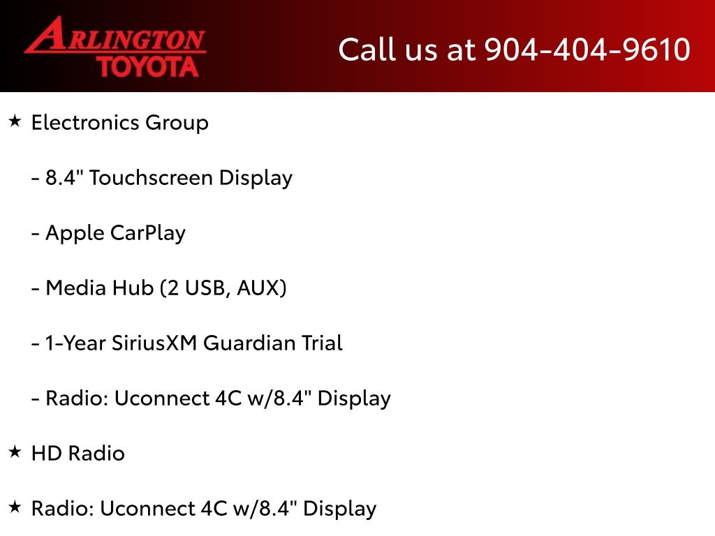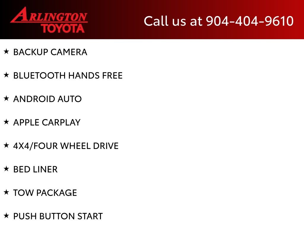CALL FOR AVAILABILITY AND EXTRA OPTIONS ARLINGTON TOYOTA 904-721-3000.
