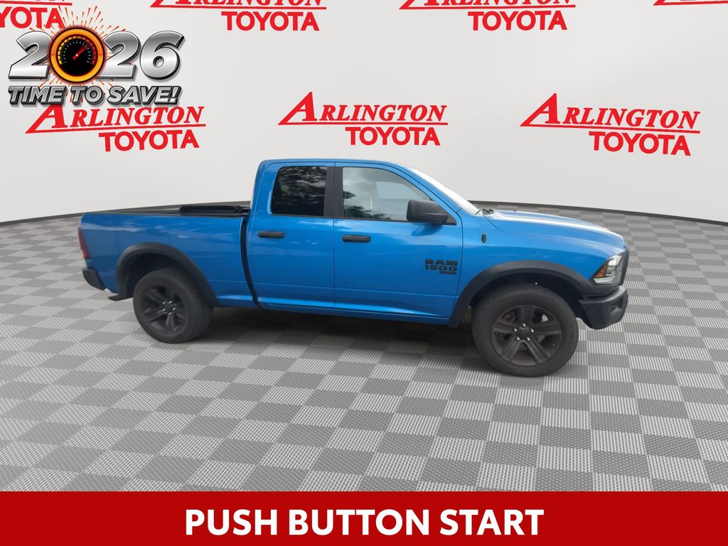 BACKUP CAMERA, BLUETOOTH HANDS FREE, ANDROID AUTO, APPLE CARPLAY, 4X4/FOUR WHEEL DRIVE, BED LINER, TOW PACKAGE, PUSH BUTTON START, CRUISE CONTROL, NON SMOKER, 1500 Classic Warlock 4X4, 4D Quad Cab, 3.6L V6 24V VVT, 8-Speed Automatic, 4WD, Hydro Blue Pearlcoat, Black Cloth, 1-Year SiriusXM Guardian Trial, 8.4" Touchscreen Display, ABS brakes, Air Conditioning ATC w/Dual Zone Control, Apple CarPlay, Cluster 7.0" TFT Color Display, Electronic Stability Control, Electronics Group, Google Android Auto, HD Radio, Low tire pressure warning, Media Hub (2 USB, AUX), Radio: Uconnect 4C w/8.4" Display, USB Host Flip, 3.21 Rear Axle Ratio, 4-Wheel Disc Brakes, 40/20/40 Split Bench Seat, 4x4 Flat Black Badge, 6 Speakers, Active Grille Shutters, Air Conditioning, Alloy wheels, AM/FM radio: SiriusXM, Bi-Function Halogen Projector Headlamps, Black Door Handles, Black Exterior Mirrors, Black Exterior Truck Badging, Black Grille w/RAM Lettering, Black Headlamp Filler Panel, Black Powder Coated Front Bumper, Black Powder Coated Rear Bumper, Black RAM Head Tailgate Badge, Black Wheel Flares, Brake assist, Bumpers: chrome, Center Hub, Charge Only Remote USB Port, Class IV Receiver Hitch, Cloth 40/20/40 Bench Seat, Compass, Delay-off headlights, Driver door bin, Dual front impact airbags, Dual front side impact airbags, Electronic Shift, Exterior Mirrors w/Heating Element, Front anti-roll bar, Front Armrest w/3 Cupholders, Front Center Armrest w/Storage, Front License Plate Bracket, Front reading lights, Front wheel independent suspension, Front Wheel Well Liners, Fully automatic headlights, GPS Antenna Input, Heated door mirrors, Illuminated entry, Integrated Voice Command w/Bluetooth, MOPAR Front & Rear Rubber Floor Mats, MOPAR Spray In Bedliner, Occupant sensing airbag, Outside temperature display, Overhead airbag, Overhead console, Panic alarm, ParkSense Rear Park Assist System, ParkView Rear Back-Up Camera, Passenger door bin, Passenger vanity mirror, Power door mirrors, Power steering, Power windows, Quick Order Package 29F Warlock, Radio data system, Radio: Uconnect 3 w/5" Display, Raised Ride Height, Rear anti-roll bar, Rear Extra HD Shock Absorbers, Rear step bumper, Remote keyless entry, Rotary Shifter-Black, Semi-Gloss Black Hub, Speed control, Sport Tail Lamps, Tachometer, Tilt steering wheel, Tip Start, Traction control, Trip computer, Variably intermittent wipers, Voltmeter, Warlock, Warlock Interior Accents, Wheels: 20" x 9" Semi-Gloss Black Aluminum, 1500 Classic Warlock 4X4, 4D Quad Cab, 3.6L V6 24V VVT, 8-Speed Automatic, 4WD, Hydro Blue Pearlcoat, Black Cloth, 1-Year SiriusXM Guardian Trial, 8.4" Touchscreen Display, ABS brakes, Air Conditioning ATC w/Dual Zone Control, Apple CarPlay, Cluster 7.0" TFT Color Display, Electronic Stability Control, Electronics Group, Google Android Auto, HD Radio, Low tire pressure warning, Media Hub (2 USB, AUX), Radio: Uconnect 4C w/8.4" Display, USB Host Flip.