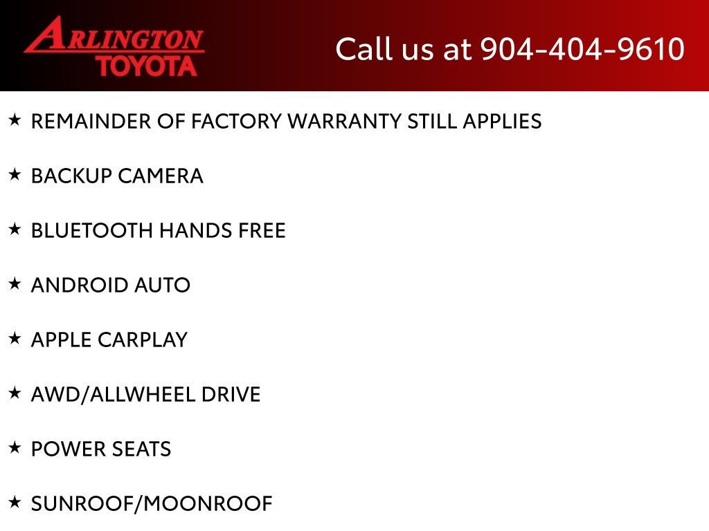 CALL FOR AVAILABILITY AND EXTRA OPTIONS ARLINGTON TOYOTA 904-721-3000.