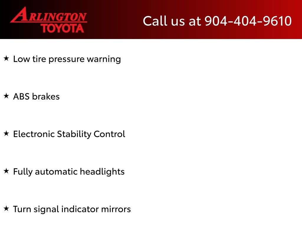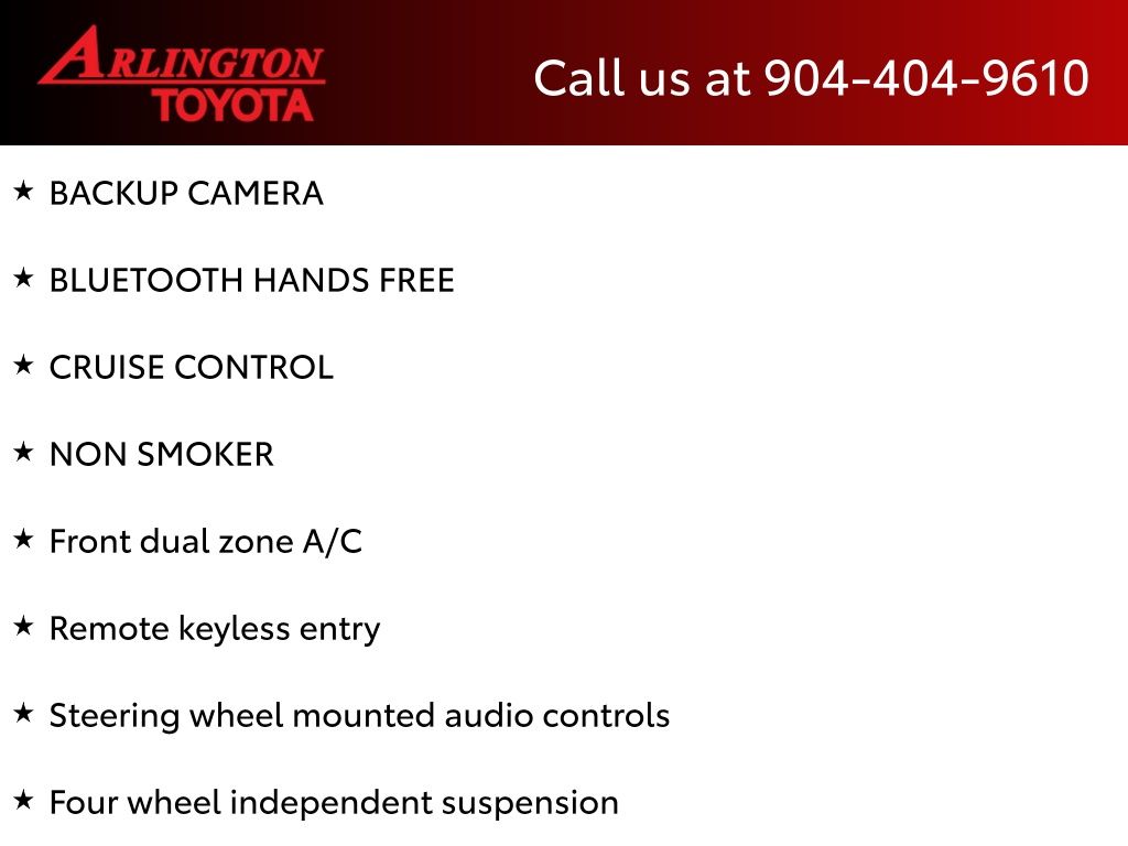 CALL FOR AVAILABILITY AND EXTRA OPTIONS ARLINGTON TOYOTA 904-721-3000.