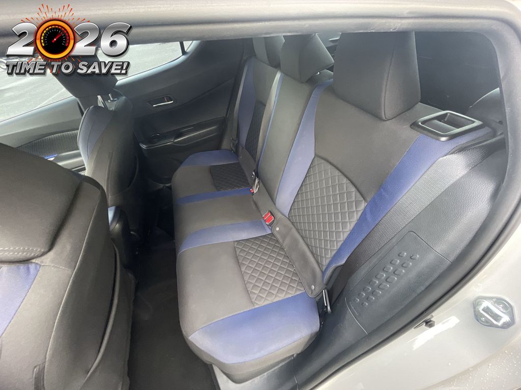 BACKUP CAMERA, BLUETOOTH HANDS FREE, CRUISE CONTROL, NON SMOKER, C-HR XLE, 4D Sport Utility, 2.0L I4 DOHC 16V, CVT, FWD, Blizzard Pearl, Black W/Blue Cloth, ABS brakes, Electronic Stability Control, Four wheel independent suspension, Front dual zone A/C, Fully automatic headlights, Low tire pressure warning, Remote keyless entry, Steering wheel mounted audio controls, Turn signal indicator mirrors, 4-Wheel Disc Brakes, 6 Speakers, Air Conditioning, Alloy wheels, AM/FM radio: SiriusXM, Auto High-beam Headlights, Auto-dimming Rear-View mirror, Automatic temperature control, Axle Ratio: TBD, Brake assist, Bumpers: body-color, Delay-off headlights, Driver door bin, Driver vanity mirror, Dual front impact airbags, Dual front side impact airbags, Exterior Parking Camera Rear, Fabric Seat Material, Front anti-roll bar, Front Bucket Seats, Front Center Armrest, Front reading lights, Heated door mirrors, Illuminated entry, Knee airbag, Leather Shift Knob, Occupant sensing airbag, Outside temperature display, Overhead airbag, Panic alarm, Passenger door bin, Passenger vanity mirror, Power door mirrors, Power Liftgate, Power steering, Power windows, Radio data system, Radio: AM/FM Stereo w/8" Touch-Screen Display, Rear anti-roll bar, Rear side impact airbag, Rear window defroster, Rear window wiper, Speed control, Speed-sensing steering, Split folding rear seat, Spoiler, Tachometer, Telescoping steering wheel, Tilt steering wheel, Traction control, Trip computer, Variably intermittent wipers, Wheels: 7" x 18" Sport Alloy, C-HR XLE, 4D Sport Utility, 2.0L I4 DOHC 16V, CVT, FWD, Blizzard Pearl, Black W/Blue Cloth, ABS brakes, Electronic Stability Control, Four wheel independent suspension, Front dual zone A/C, Fully automatic headlights, Low tire pressure warning, Remote keyless entry, Steering wheel mounted audio controls, Turn signal indicator mirrors.