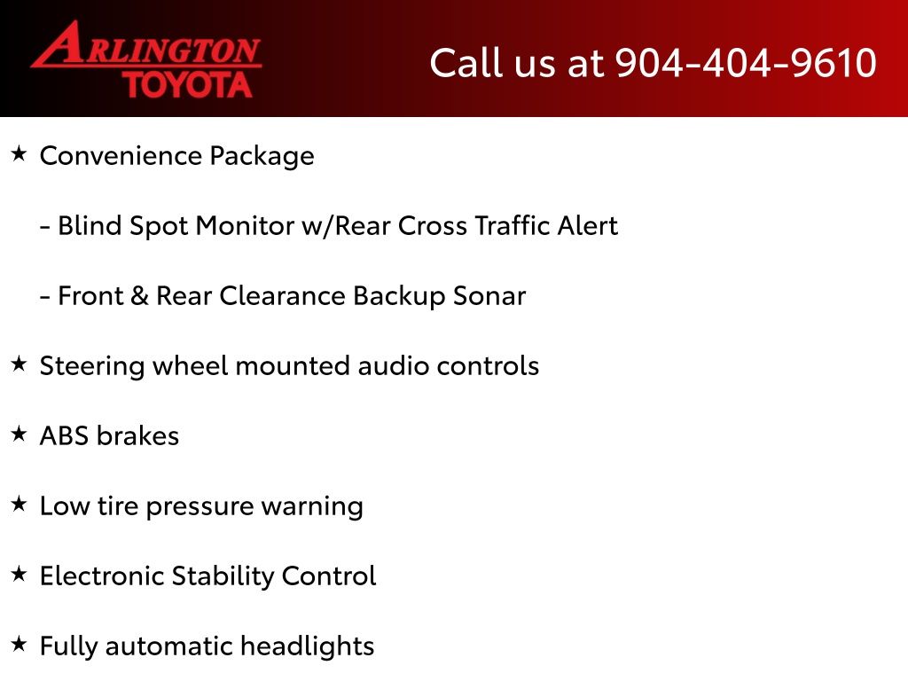 CALL FOR AVAILABILITY AND EXTRA OPTIONS ARLINGTON TOYOTA 904-721-3000.