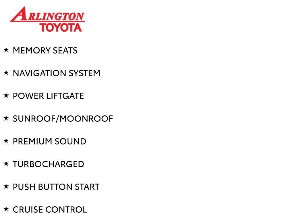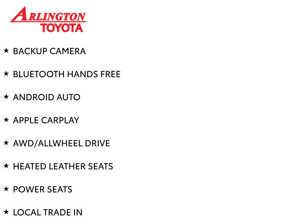 Prices do not include tax, tag, title, a pre-delivery service fee* of $894.00, an electronic registration filing fee* of $199.00 (*these charges represent costs and profits to the dealer for items such as inspecting, cleaning, and preparing documents related to the sale), and an Arlington Toyota Total Value Package of $1,889.00 (*these charges represent costs and profits to the dealer for items such as inspecting, cleaning, and preparing documents related to the sale). The final price is also subject to repair order reconditioning costs. Any price does not include dealer-installed accessories. All offers are mutually exclusive. All vehicles are subject to prior sale. See dealer for complete details.