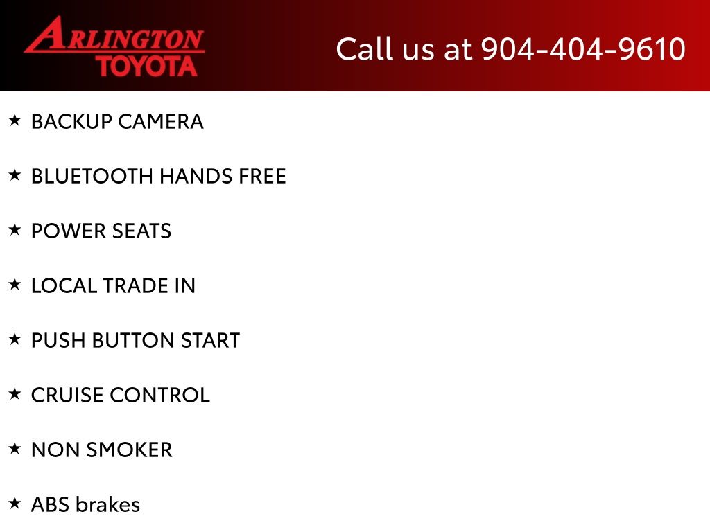 CALL FOR AVAILABILITY AND EXTRA OPTIONS ARLINGTON TOYOTA 904-721-3000.
