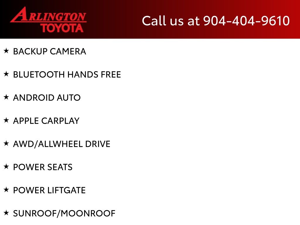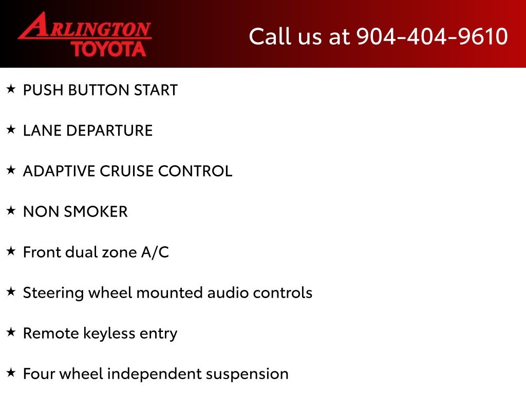 CALL FOR AVAILABILITY AND EXTRA OPTIONS ARLINGTON TOYOTA 904-721-3000.