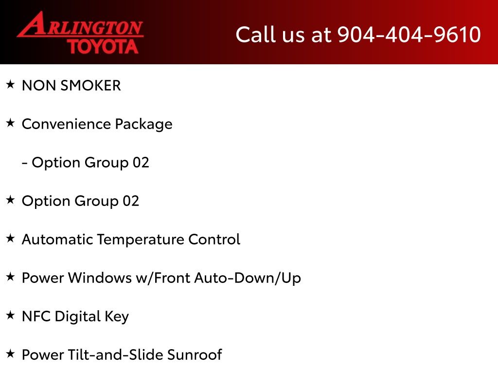 CALL FOR AVAILABILITY AND EXTRA OPTIONS ARLINGTON TOYOTA 904-721-3000.