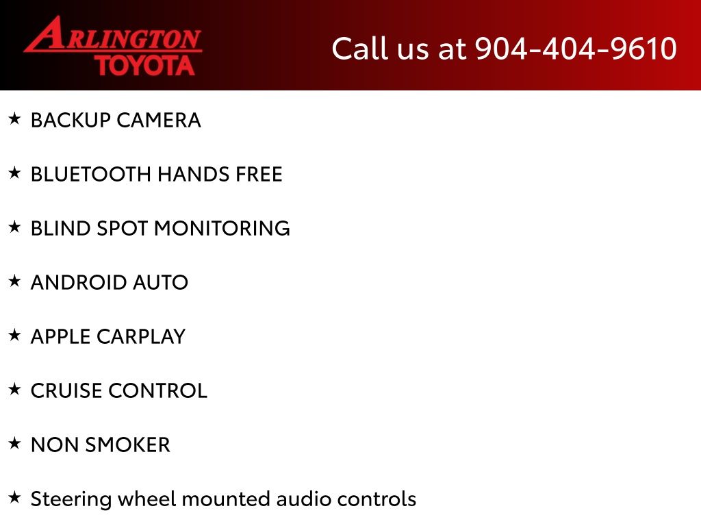 CALL FOR AVAILABILITY AND EXTRA OPTIONS ARLINGTON TOYOTA 904-721-3000.