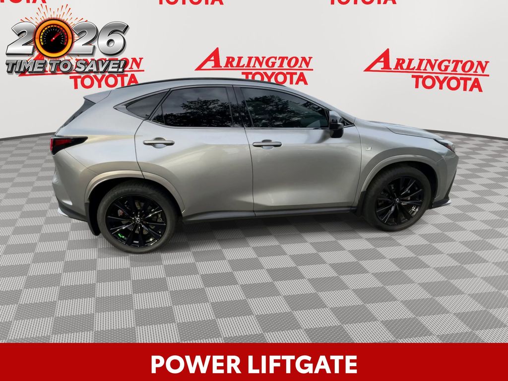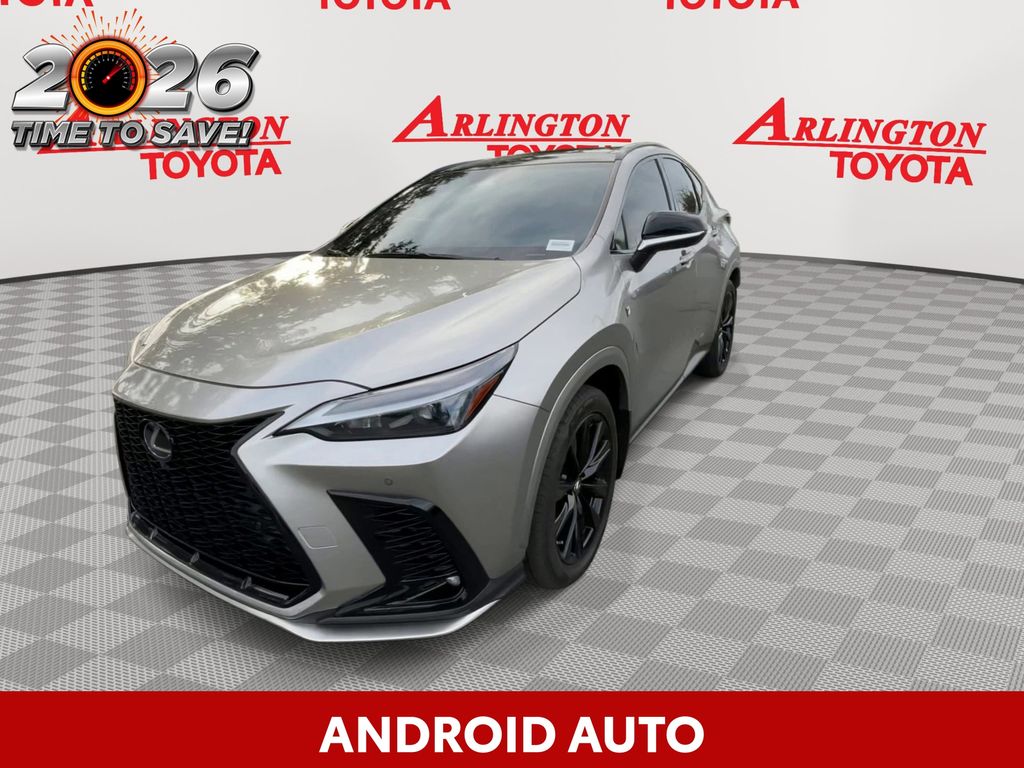 BACKUP CAMERA, BLUETOOTH HANDS FREE, ANDROID AUTO, APPLE CARPLAY, AWD/ALLWHEEL DRIVE, POWER SEATS, PANORAMIC MOONROOF, POWER LIFTGATE, PUSH BUTTON START, LANE DEPARTURE, ADAPTIVE CRUISE CONTROL, NON SMOKER, NX 350 F SPORT Handling AWD, 4D Sport Utility, 2.4L I4 DOHC 16V, 8-Speed Automatic, AWD, Atomic Silver, Black w/NuLuxe Seat Trim, 14" Display Navigation, ABS brakes, Auto Rain Sensing Windshield Wipers, Electronic Stability Control, F SPORT Handling w/Luxury Package, Four wheel independent suspension, Front dual zone A/C, Fully automatic headlights, Heads-Up Display, Kick Auto Open/Close Door, Low tire pressure warning, Parking Support Alert/Brake, Remote keyless entry, Steering wheel mounted audio controls, Turn signal indicator mirrors, Ventilated Front Seats, Wireless Smart Door Lock, Wood Door Trim, 10 Speakers, 20" Wheels, 4-Wheel Disc Brakes, Adaptive suspension, AFS & AHB Headlamp, Air Conditioning, All Weather Cargo Mat (PPO), All Weather Floor Liners (PPO), Alloy Wheel Locks, Alloy wheels, Aluminum Door Trim, AM/FM radio: SiriusXM, Anti-whiplash front head restraints, Auto High-beam Headlights, Auto tilt-away steering wheel, Auto-dimming door mirrors, Auto-dimming Rear-View mirror, Automatic temperature control, Axle Ratio: 3.329, Back Monitor, Brake assist, Bumpers: body-color, Cargo Net (PPO), Delay-off headlights, Door Edge Film by 3M (PPO), Driver door bin, Driver vanity mirror, Dual front impact airbags, Dual front side impact airbags, Electrochromic Exterior Mirrors, Exterior Parking Camera Rear, F SPORT Heated Front Bucket Seats, F SPORT NuLuxe Seat Trim, Front anti-roll bar, Front Bucket Seats, Front Center Armrest, Front fog lights, Front reading lights, Garage door transmitter: HomeLink, Heated door mirrors, Heated front seats, Illuminated entry, Key Gloves (PPO), Knee airbag, Lane Change Assist, Leather Shift Knob, Mudguards (PPO), Occupant sensing airbag, Outside temperature display, Overhead airbag, Overhead console, Panic alarm, Panoramic Slide Moonroof/Sunroof, Passenger door bin, Passenger vanity mirror, Power door mirrors, Power driver seat, Power passenger seat, Power steering, Power Steering Column, Power Tilt & Slide Moonroof/Sunroof, Power windows, Radio data system, Radio: 10-Speaker Sound System, Rear anti-roll bar, Rear reading lights, Rear seat center armrest, Rear window defroster, Rear window wiper, Roof rack: rails only, Security system, Side Puddle Lamp (PPO), Smart Phone Convenience Package, Speed control, Speed-sensing steering, Split folding rear seat, Spoiler, Sport steering wheel, Tachometer, Telescoping steering wheel, Tilt steering wheel, Towing Package (2000 lbs), Traction control, Trip computer, Variably intermittent wipers, Vision Package, Wireless Apple CarPlay/Wireless Android Auto, NX 350 F SPORT Handling AWD, 4D Sport Utility, 2.4L I4 DOHC 16V, 8-Speed Automatic, AWD, Atomic Silver, Black w/NuLuxe Seat Trim, 14" Display Navigation, ABS brakes, Auto Rain Sensing Windshield Wipers, Electronic Stability Control, F SPORT Handling w/Luxury Package, Four wheel independent suspension, Front dual zone A/C, Fully automatic headlights, Heads-Up Display, Kick Auto Open/Close Door, Low tire pressure warning, Parking Support Alert/Brake, Remote keyless entry, Steering wheel mounted audio controls, Turn signal indicator mirrors, Ventilated Front Seats, Wireless Smart Door Lock, Wood Door Trim.