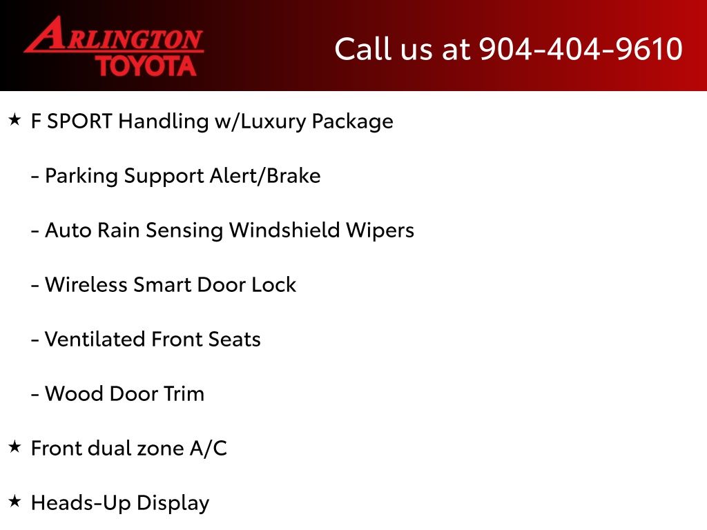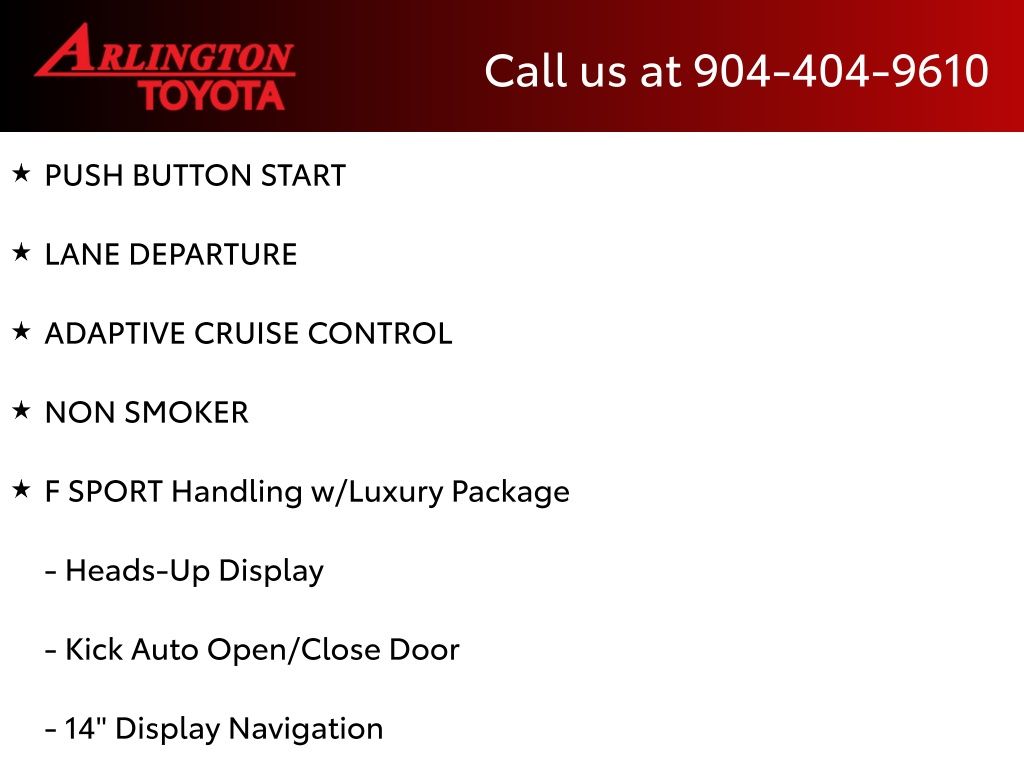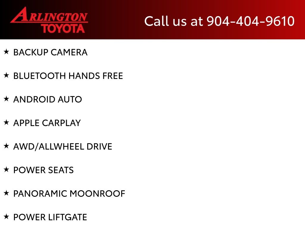 CALL FOR AVAILABILITY AND EXTRA OPTIONS ARLINGTON TOYOTA 904-721-3000.
