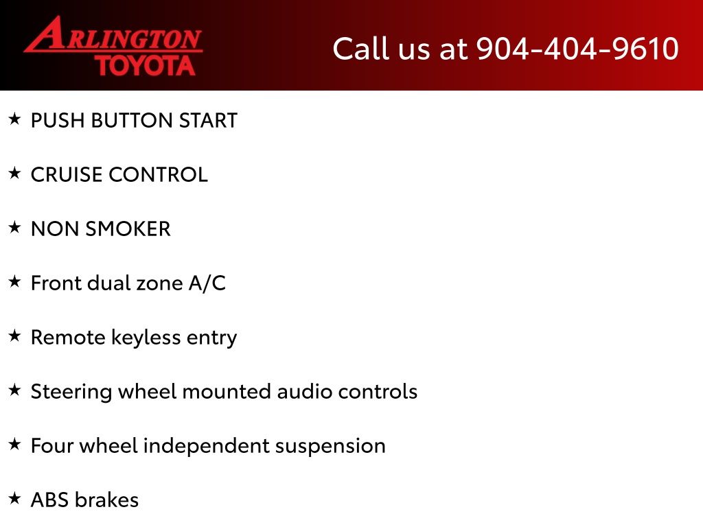 CALL FOR AVAILABILITY AND EXTRA OPTIONS ARLINGTON TOYOTA 904-721-3000.