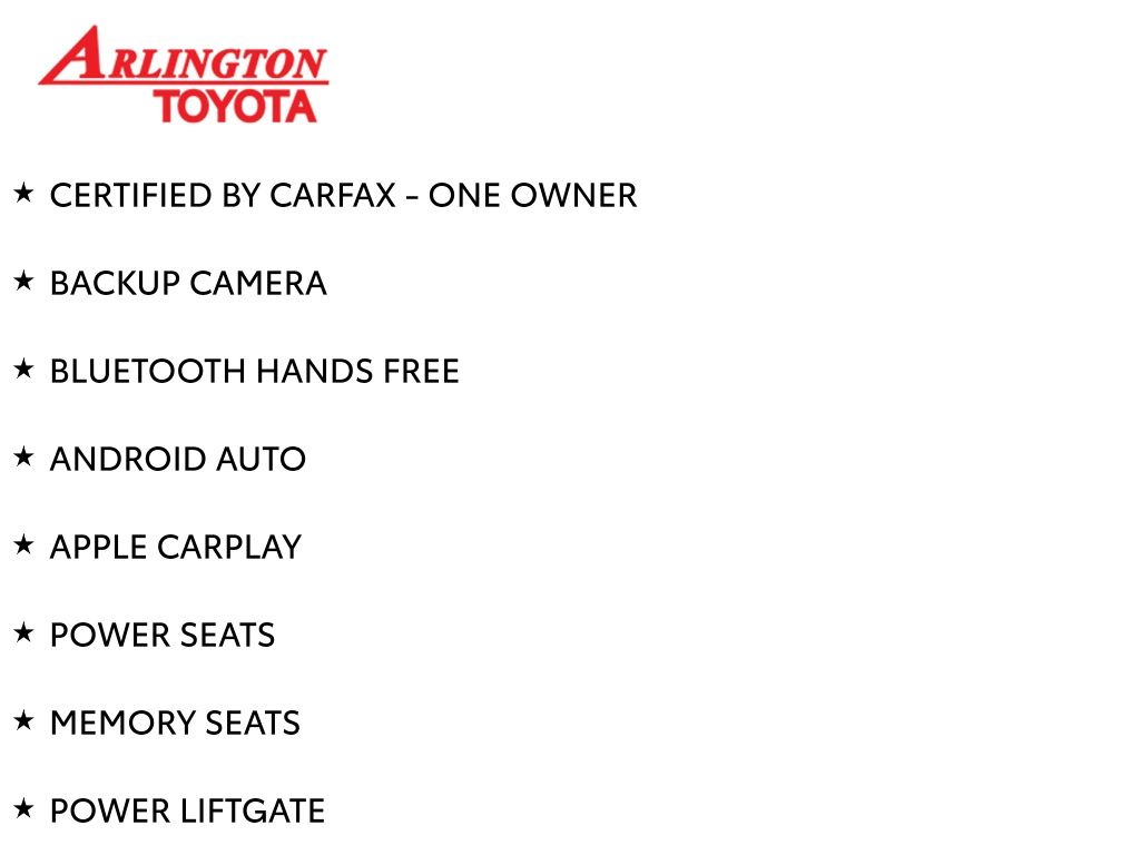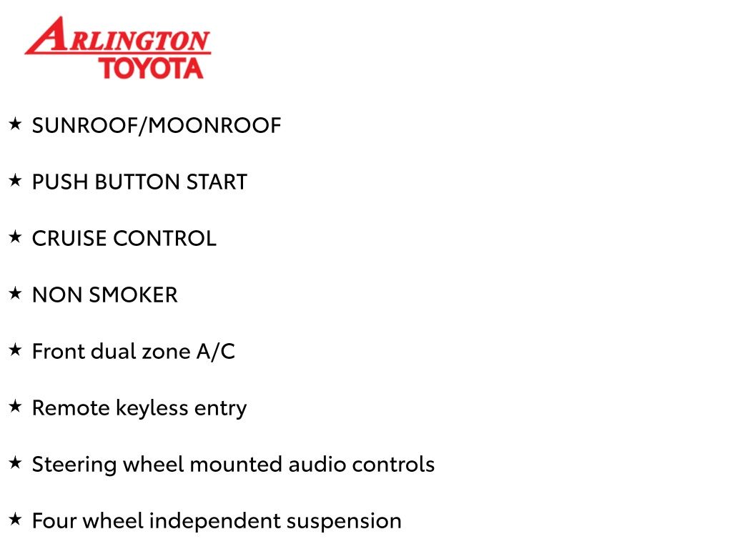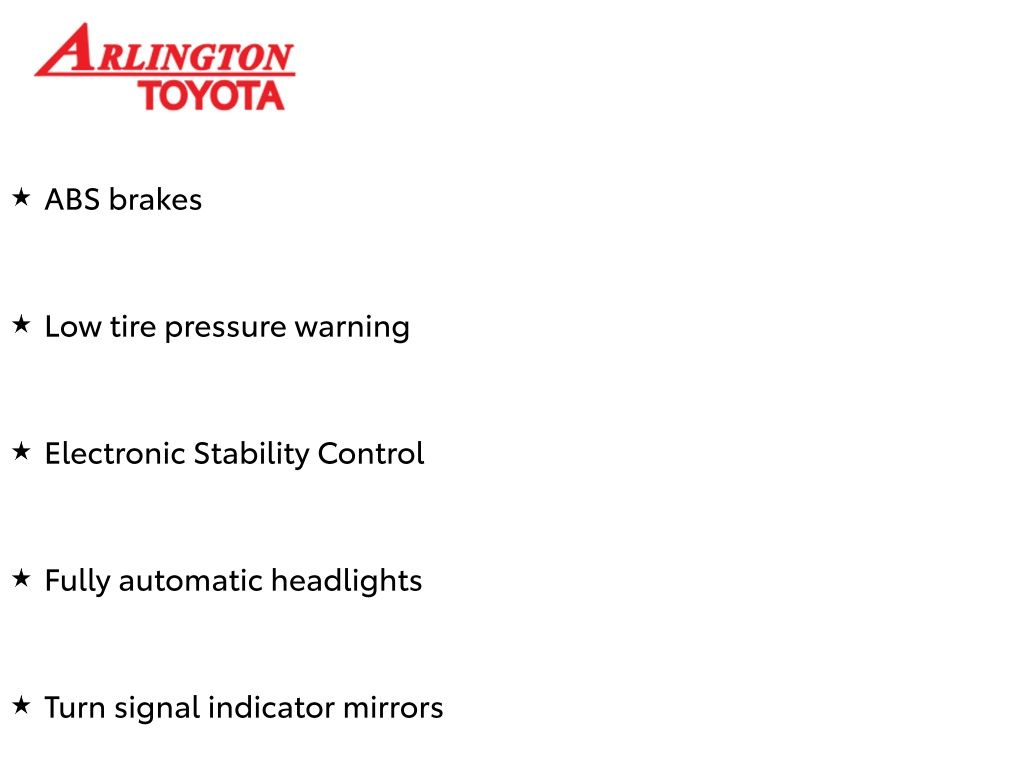 Prices do not include tax, tag, title, a pre-delivery service fee* of $894.00, an electronic registration filing fee* of $199.00 (*these charges represent costs and profits to the dealer for items such as inspecting, cleaning, and preparing documents related to the sale), and an Arlington Toyota Total Value Package of $1,889.00 (*these charges represent costs and profits to the dealer for items such as inspecting, cleaning, and preparing documents related to the sale). The final price is also subject to repair order reconditioning costs. Any price does not include dealer-installed accessories. All offers are mutually exclusive. All vehicles are subject to prior sale. See dealer for complete details.