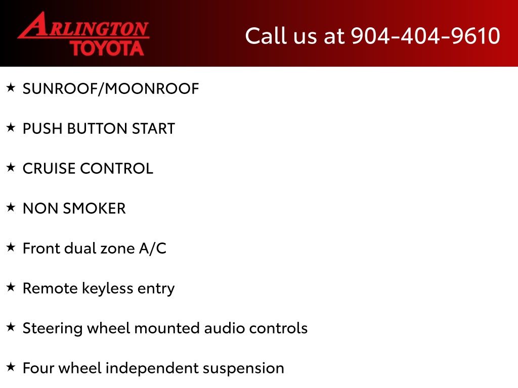 CALL FOR AVAILABILITY AND EXTRA OPTIONS ARLINGTON TOYOTA 904-721-3000.