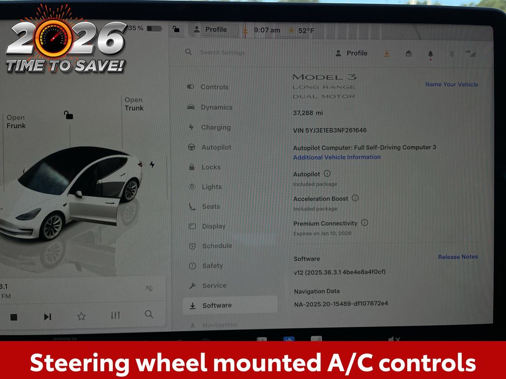 REMAINDER OF FACTORY WARRANTY STILL APPLIES, BACKUP CAMERA, BLUETOOTH HANDS FREE, AWD/ALLWHEEL DRIVE, POWER SEATS, LOW MILES, MEMORY SEATS, NAVIGATION SYSTEM, LANE DEPARTURE, ADAPTIVE CRUISE CONTROL, NON SMOKER, Model 3 Long Range AWD, 4D Sedan, Electric Motor, 1-Speed Automatic, AWD, Pearl White Multi-Coat, ABS brakes, Four wheel independent suspension, Front dual zone A/C, Fully automatic headlights, Low tire pressure warning, Steering wheel mounted A/C controls, Steering wheel mounted audio controls, 14 Speakers, 4-Wheel Disc Brakes, Air Conditioning, Alloy wheels, Audio memory, Auto High-beam Headlights, Auto-dimming door mirrors, Auto-dimming Rear-View mirror, Automatic temperature control, Brake assist, Bumpers: body-color, Compass, Delay-off headlights, Driver door bin, Driver vanity mirror, Dual front impact airbags, Dual front side impact airbags, Electronic Stability Control, Exterior Parking Camera Rear, Front anti-roll bar, Front Bucket Seats, Front Center Armrest, Front fog lights, Front reading lights, Genuine wood dashboard insert, Heated door mirrors, Heated front seats, Heated rear seats, Heated steering wheel, HVAC memory, Illuminated entry, Knee airbag, Lane Departure Warning System, Memory seat, Navigation System, Occupant sensing airbag, Outside temperature display, Overhead airbag, Passenger door bin, Passenger vanity mirror, Power door mirrors, Power driver seat, Power passenger seat, Power steering, Power windows, Premium Audio System, Premium Heated Front Bucket Seats, Premium Seat Trim, Radio data system, Rain sensing wipers, Rear reading lights, Rear seat center armrest, Rear window defroster, Security system, Speed control, Speed-sensing steering, Split folding rear seat, Steering wheel memory, Telescoping steering wheel, Tilt steering wheel, Traction control, Trip computer, Variably intermittent wipers, Wheels: 18" x 8.5" Aero, Model 3 Long Range AWD, 4D Sedan, Electric Motor, 1-Speed Automatic, AWD, Pearl White Multi-Coat, ABS brakes, Four wheel independent suspension, Front dual zone A/C, Fully automatic headlights, Low tire pressure warning, Steering wheel mounted A/C controls, Steering wheel mounted audio controls.