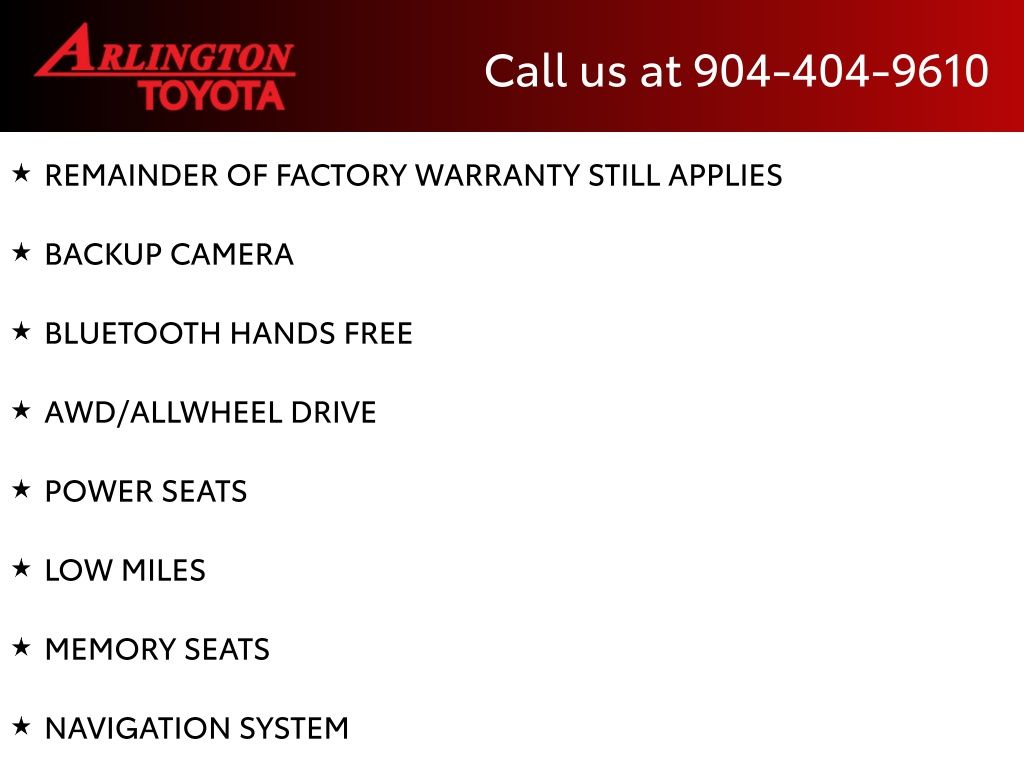 CALL FOR AVAILABILITY AND EXTRA OPTIONS ARLINGTON TOYOTA 904-721-3000.