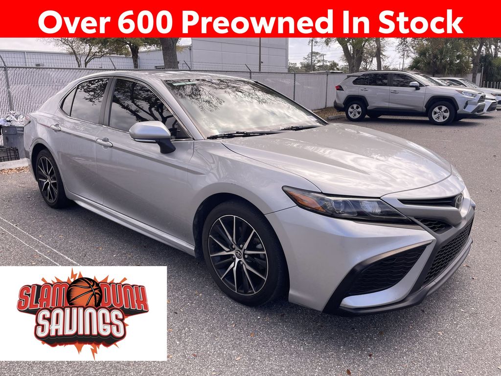 BACKUP CAMERA, BLUETOOTH HANDS FREE, ANDROID AUTO, APPLE CARPLAY, NON SMOKER, Camry SE, 4D Sedan, 2.5L I4 DOHC 16V, 8-Speed Automatic, FWD, Celestial Silver, Black Cloth, ABS brakes, Electronic Stability Control, Four wheel independent suspension, Front dual zone A/C, Fully automatic headlights, Low tire pressure warning, Remote keyless entry, Steering wheel mounted audio controls, 4-Wheel Disc Brakes, 6 Speakers, Air Conditioning, Alloy wheels, AM/FM radio: SiriusXM, Apple CarPlay/Android Auto, Auto High-beam Headlights, Automatic temperature control, Brake assist, Bumpers: body-color, Delay-off headlights, Driver door bin, Driver vanity mirror, Dual front impact airbags, Dual front side impact airbags, Exterior Parking Camera Rear, Fabric Seat Trim w/Sport SofTex, Front anti-roll bar, Front Bucket Seats, Front Center Armrest, Front reading lights, Heated door mirrors, Illuminated entry, Knee airbag, Occupant sensing airbag, Outside temperature display, Overhead airbag, Overhead console, Panic alarm, Passenger door bin, Passenger vanity mirror, Power door mirrors, Power driver seat, Power steering, Power windows, Radio data system, Radio: AM/FM Audio System, Rear anti-roll bar, Rear seat center armrest, Rear side impact airbag, Rear window defroster, Security system, Speed control, Speed-sensing steering, Split folding rear seat, Spoiler, Tachometer, Telescoping steering wheel, Tilt steering wheel, Traction control, Trip computer, Turn signal indicator mirrors, Variably intermittent wipers, Wheels: 8.0J x 18" Black Machined-Finish Alloy, Camry SE, 4D Sedan, 2.5L I4 DOHC 16V, 8-Speed Automatic, FWD, Celestial Silver, Black Cloth, ABS brakes, Electronic Stability Control, Four wheel independent suspension, Front dual zone A/C, Fully automatic headlights, Low tire pressure warning, Remote keyless entry, Steering wheel mounted audio controls.