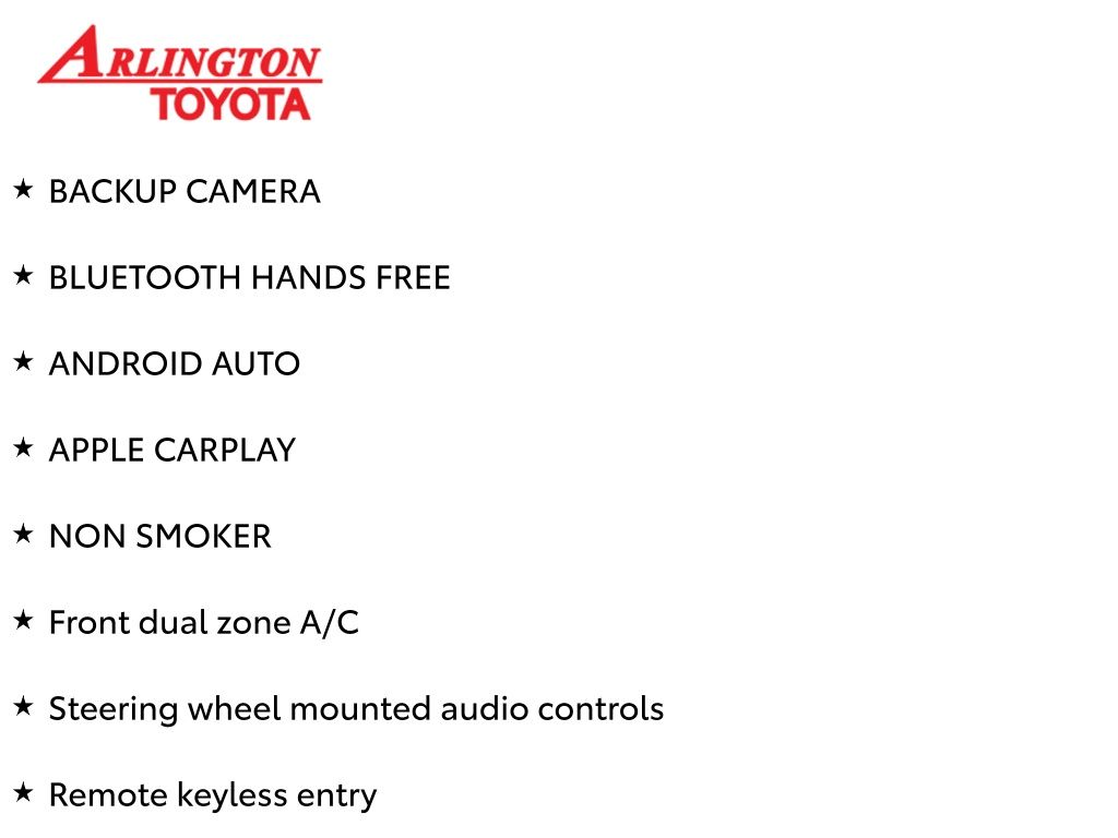 Prices do not include tax, tag, title, a pre-delivery service fee* of $894.00, an electronic registration filing fee* of $199.00 (*these charges represent costs and profits to the dealer for items such as inspecting, cleaning, and preparing documents related to the sale), and an Arlington Toyota Total Value Package of $1,889.00 (*these charges represent costs and profits to the dealer for items such as inspecting, cleaning, and preparing documents related to the sale). The final price is also subject to repair order reconditioning costs. Any price does not include dealer-installed accessories. All offers are mutually exclusive. All vehicles are subject to prior sale. See dealer for complete details.