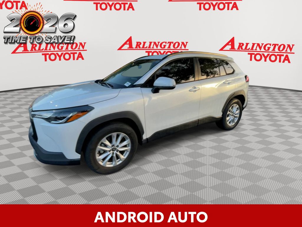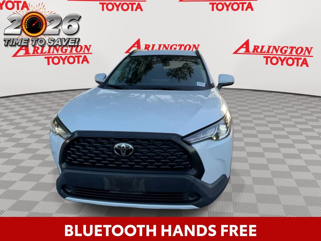 BACKUP CAMERA, BLUETOOTH HANDS FREE, ANDROID AUTO, APPLE CARPLAY, LOCAL TRADE IN, LOW MILES, PUSH BUTTON START, LANE DEPARTURE, ADAPTIVE CRUISE CONTROL, NON SMOKER, Corolla Cross LE AWD, 4D Sport Utility, 2.0L I4 PDI DOHC 16V LEV3-SULEV30 169hp, CVT, AWD, Wind Chill Pearl, Black w/Fabric Seat Trim, ABS brakes, Electronic Stability Control, Fully automatic headlights, Low tire pressure warning, Steering wheel mounted audio controls, Turn signal indicator mirrors, 17" Alloy Wheels, 4-Wheel Disc Brakes, 4.014 Axle Ratio, 6 Speakers, Air Conditioning, Alloy wheels, AM/FM radio: SiriusXM, Apple CarPlay/Android Auto, Auto High-beam Headlights, Automatic temperature control, Brake assist, Bumpers: body-color, Delay-off headlights, Driver door bin, Driver vanity mirror, Dual front impact airbags, Dual front side impact airbags, Exterior Parking Camera Rear, Fabric Seat Trim, Four wheel independent suspension, Front anti-roll bar, Front Bucket Seats, Front Center Armrest, Front reading lights, Heated door mirrors, Illuminated entry, Knee airbag, Leather steering wheel, Occupant sensing airbag, Outside temperature display, Overhead airbag, Panic alarm, Passenger door bin, Passenger vanity mirror, Power door mirrors, Power steering, Power windows, Radio data system, Radio: 6 Speaker Audio, Rear anti-roll bar, Rear side impact airbag, Rear window defroster, Rear window wiper, Remote keyless entry, Roof rack: rails only, Security system, Speed control, Split folding rear seat, Spoiler, Tachometer, Telescoping steering wheel, Tilt steering wheel, Traction control, Trip computer, Variably intermittent wipers, Corolla Cross LE AWD, 4D Sport Utility, 2.0L I4 PDI DOHC 16V LEV3-SULEV30 169hp, CVT, AWD, Wind Chill Pearl, Black w/Fabric Seat Trim, ABS brakes, Electronic Stability Control, Fully automatic headlights, Low tire pressure warning, Steering wheel mounted audio controls, Turn signal indicator mirrors.