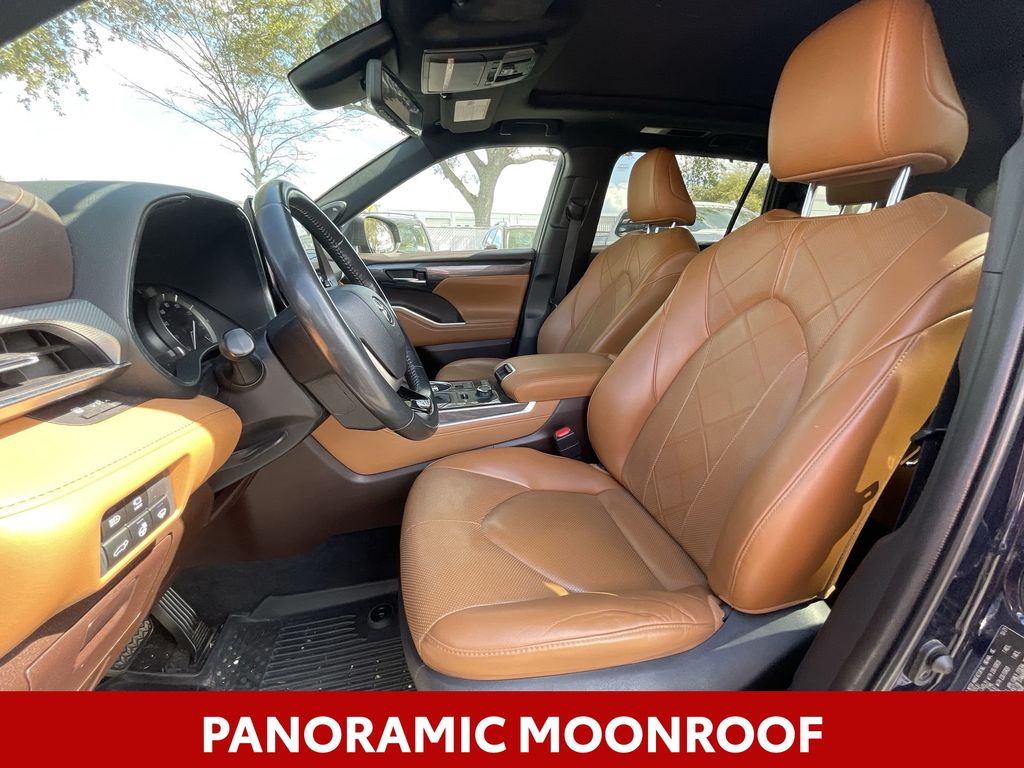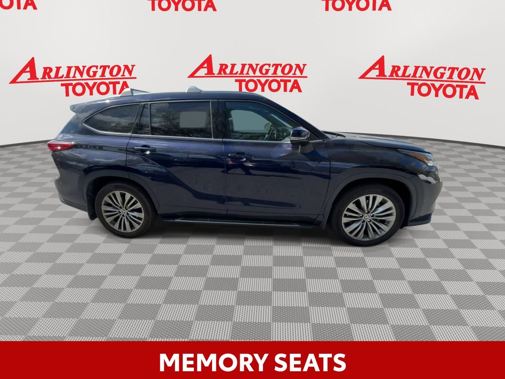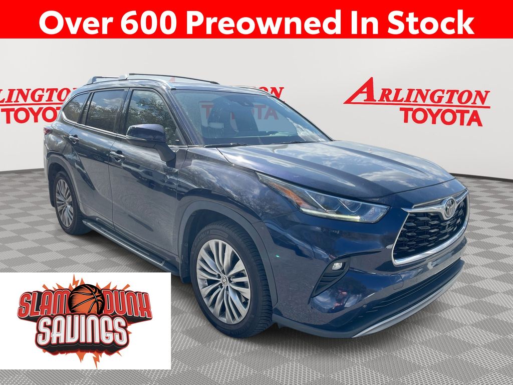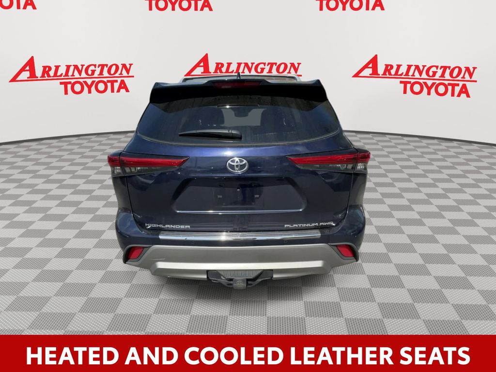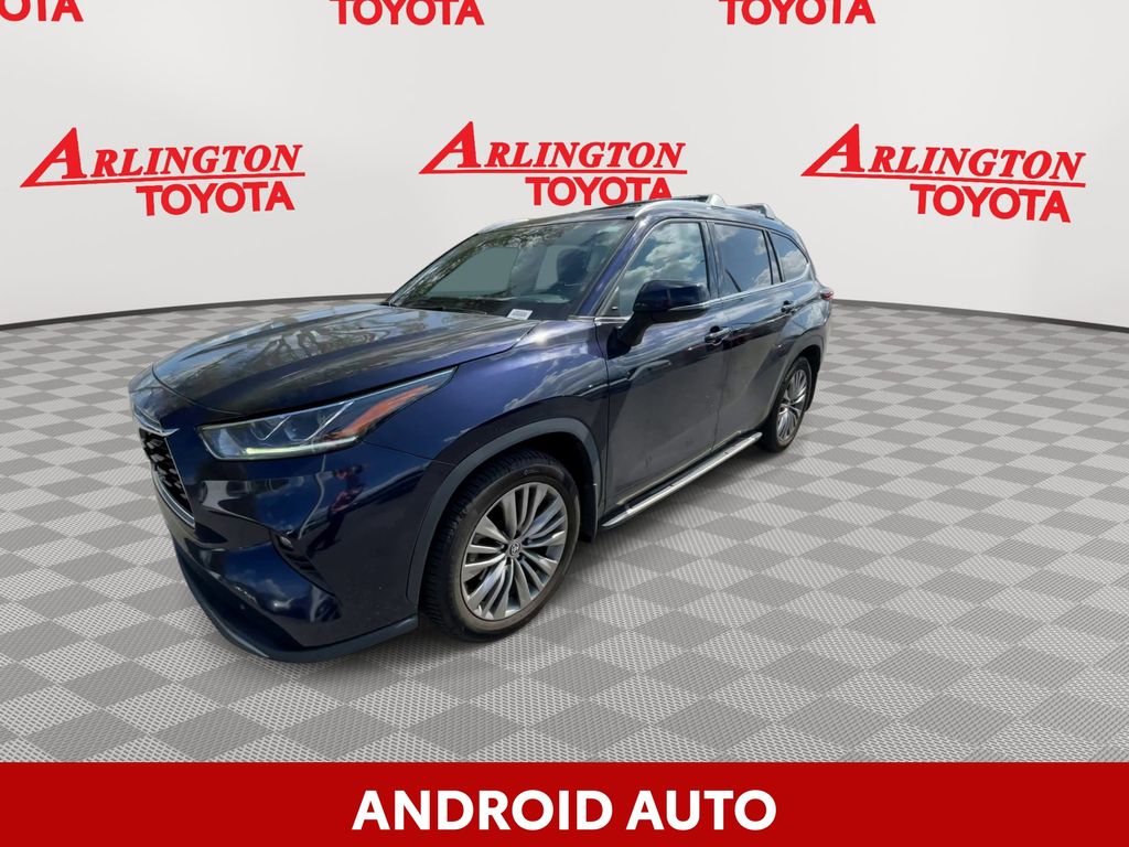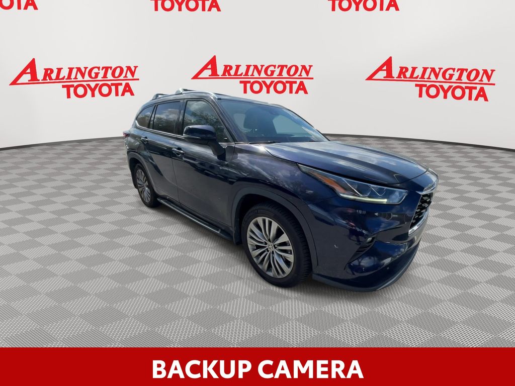 BACKUP CAMERA, BLUETOOTH HANDS FREE, ANDROID AUTO, APPLE CARPLAY, AWD/ALLWHEEL DRIVE, HEATED AND COOLED LEATHER SEATS, POWER SEATS, MEMORY SEATS, NAVIGATION SYSTEM, PANORAMIC MOONROOF, POWER LIFTGATE, SPRAY IN LINER, PUSH BUTTON START, LANE DEPARTURE, ADAPTIVE CRUISE CONTROL, NON SMOKER, Highlander Platinum AWD, 4D Sport Utility, 3.5L V6 DOHC, 8-Speed Automatic, AWD, Blueprint, Glazed Caramel Leather, Electronic Stability Control, Fully automatic headlights, 11 Speakers, 20" Painted Alloy Wheels, 3.003 Axle Ratio, 3rd row seats: split-bench, 4-Wheel Disc Brakes, ABS brakes, Air Conditioning, Alloy wheels, AM/FM radio: SiriusXM, Apple CarPlay/Android Auto, Auto High-beam Headlights, Auto-dimming Rear-View mirror, Automatic temperature control, Brake assist, Bumpers: body-color, Delay-off headlights, Digital Rearview Mirror w/HomeLink, Driver door bin, Driver vanity mirror, Dual front impact airbags, Dual front side impact airbags, Emergency communication system: Safety Connect with 1-year trial, Four wheel independent suspension, Front anti-roll bar, Front Bucket Seats, Front Center Armrest, Front dual zone A/C, Front fog lights, Front reading lights, Garage door transmitter: HomeLink, Heads-Up Display, Heated door mirrors, Heated front seats, Heated rear seats, Heated steering wheel, Heated/Ventilated Front Bucket Seats, High Grade LED Projector Headlights, Illuminated entry, Knee airbag, Leather Seat Trim, Leather Shift Knob, Low tire pressure warning, Memory seat, Navigation system: Dynamic Navigation (3-year trial), Occupant sensing airbag, Outside temperature display, Overhead airbag, Overhead console, Panic alarm, Panoramic Moonroof, Panoramic View Monitor, Passenger door bin, Passenger vanity mirror, Platinum Package, Power door mirrors, Power driver seat, Power Liftgate, Power moonroof, Power passenger seat, Power steering, Power windows, Radio: Premium Audio w/JBL Clari-Fi, Rain sensing wipers, Rear air conditioning, Rear anti-roll bar, Rear reading lights, Rear window defroster, Rear window wiper, Reclining 3rd row seat, Remote keyless entry, Roof rack: rails only, Security system, Speed control, Speed-sensing steering, Split folding rear seat, Spoiler, Steering wheel mounted audio controls, Tachometer, Telescoping steering wheel, Tilt steering wheel, Traction control, Trip computer, Turn signal indicator mirrors, Variably intermittent wipers, Ventilated front seats, Highlander Platinum AWD, 4D Sport Utility, 3.5L V6 DOHC, 8-Speed Automatic, AWD, Blueprint, Glazed Caramel Leather, Electronic Stability Control, Fully automatic headlights.