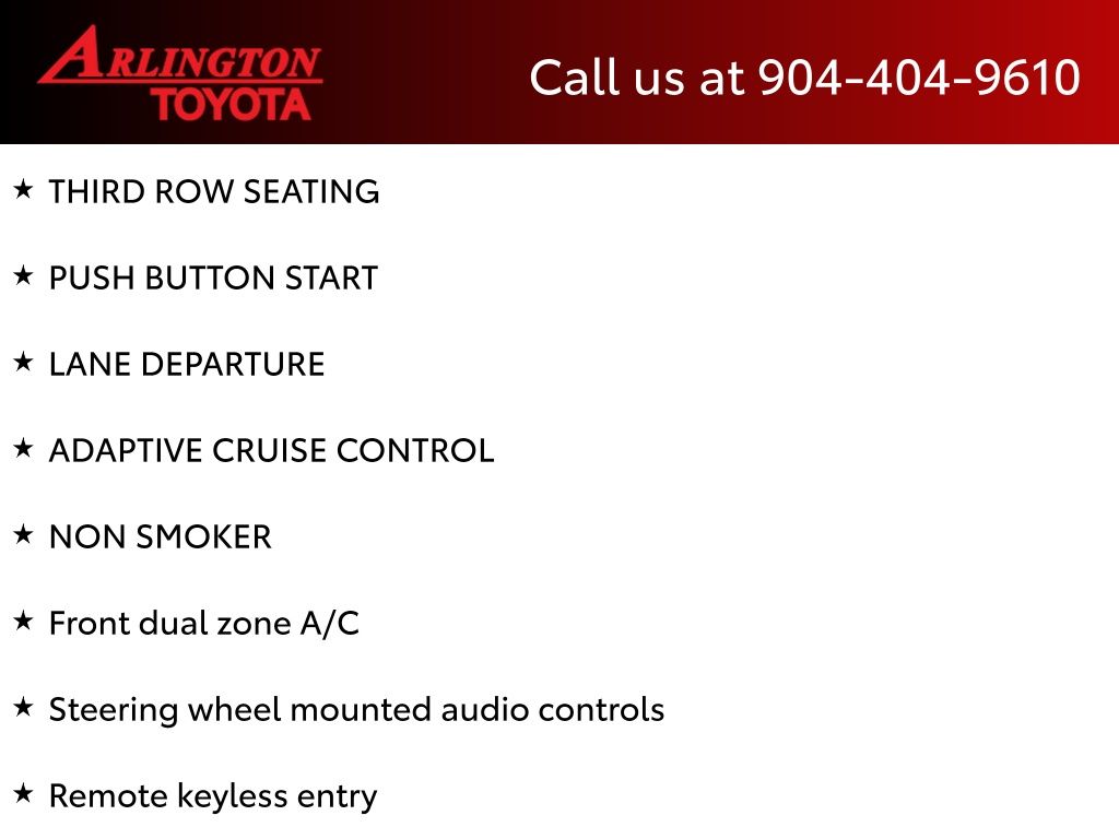 BACKUP CAMERA, BLUETOOTH HANDS FREE, ANDROID AUTO, APPLE CARPLAY, POWER SEATS, LOCAL TRADE IN, POWER LIFTGATE, SUNROOF/MOONROOF, THIRD ROW SEATING, PUSH BUTTON START, LANE DEPARTURE, ADAPTIVE CRUISE CONTROL, NON SMOKER, Highlander XLE, 4D Sport Utility, 3.5L V6 DOHC, 8-Speed Automatic, FWD, ABS brakes, Four wheel independent suspension, Front dual zone A/C, Low tire pressure warning, Remote keyless entry, Steering wheel mounted audio controls, Turn signal indicator mirrors, 3.003 Axle Ratio, 3rd row seats: split-bench, 4-Wheel Disc Brakes, 6 Speakers, Air Conditioning, Alloy wheels, AM/FM radio: SiriusXM, Apple CarPlay/Android Auto, Auto High-beam Headlights, Auto-dimming Rear-View mirror, Automatic temperature control, Brake assist, Bumpers: body-color, Delay-off headlights, Driver door bin, Driver vanity mirror, Dual front impact airbags, Dual front side impact airbags, Electronic Stability Control, Exterior Parking Camera Rear, Front anti-roll bar, Front Bucket Seats, Front Center Armrest, Front fog lights, Front reading lights, Fully automatic headlights, Garage door transmitter: HomeLink, Heated door mirrors, Heated Front Bucket Seats, Heated front seats, Illuminated entry, Knee airbag, Leather Shift Knob, Occupant sensing airbag, Outside temperature display, Overhead airbag, Overhead console, Panic alarm, Passenger door bin, Passenger vanity mirror, Power door mirrors, Power driver seat, Power Liftgate, Power moonroof, Power passenger seat, Power steering, Power windows, Radio: Audio Plus, Rear air conditioning, Rear anti-roll bar, Rear reading lights, Rear window defroster, Rear window wiper, Reclining 3rd row seat, Roof rack: rails only, Security system, SofTex Seat Trim, Speed control, Speed-sensing steering, Split folding rear seat, Spoiler, Tachometer, Telescoping steering wheel, Tilt steering wheel, Traction control, Trip computer, Variably intermittent wipers, Wheels: 18" Machined-Finish Alloy, Highlander XLE, 4D Sport Utility, 3.5L V6 DOHC, 8-Speed Automatic, FWD, ABS brakes, Four wheel independent suspension, Front dual zone A/C, Low tire pressure warning, Remote keyless entry, Steering wheel mounted audio controls, Turn signal indicator mirrors.