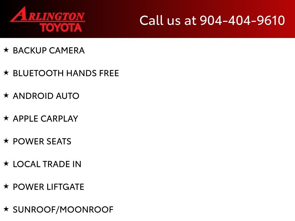 CALL FOR AVAILABILITY AND EXTRA OPTIONS ARLINGTON TOYOTA 904-721-3000.