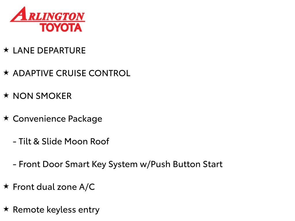 Prices do not include tax, tag, title, a pre-delivery service fee* of $894.00, an electronic registration filing fee* of $199.00 (*these charges represent costs and profits to the dealer for items such as inspecting, cleaning, and preparing documents related to the sale), and an Arlington Toyota Total Value Package of $1,889.00 (*these charges represent costs and profits to the dealer for items such as inspecting, cleaning, and preparing documents related to the sale). The final price is also subject to repair order reconditioning costs. Any price does not include dealer-installed accessories. All offers are mutually exclusive. All vehicles are subject to prior sale. See dealer for complete details.