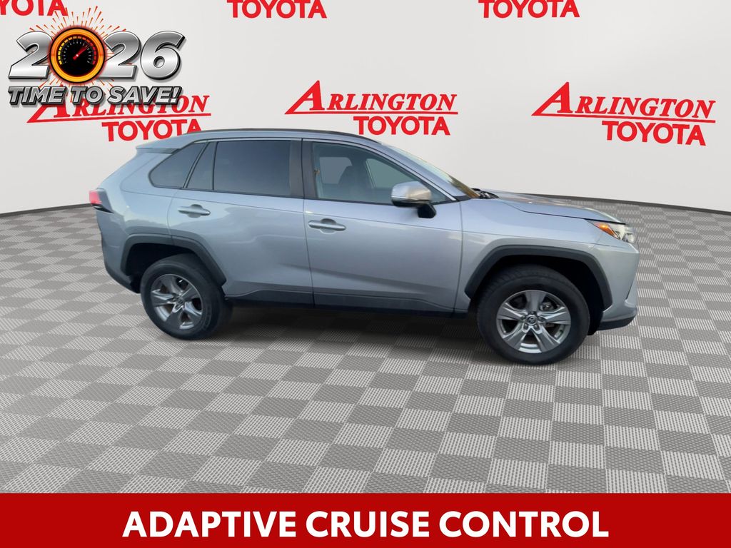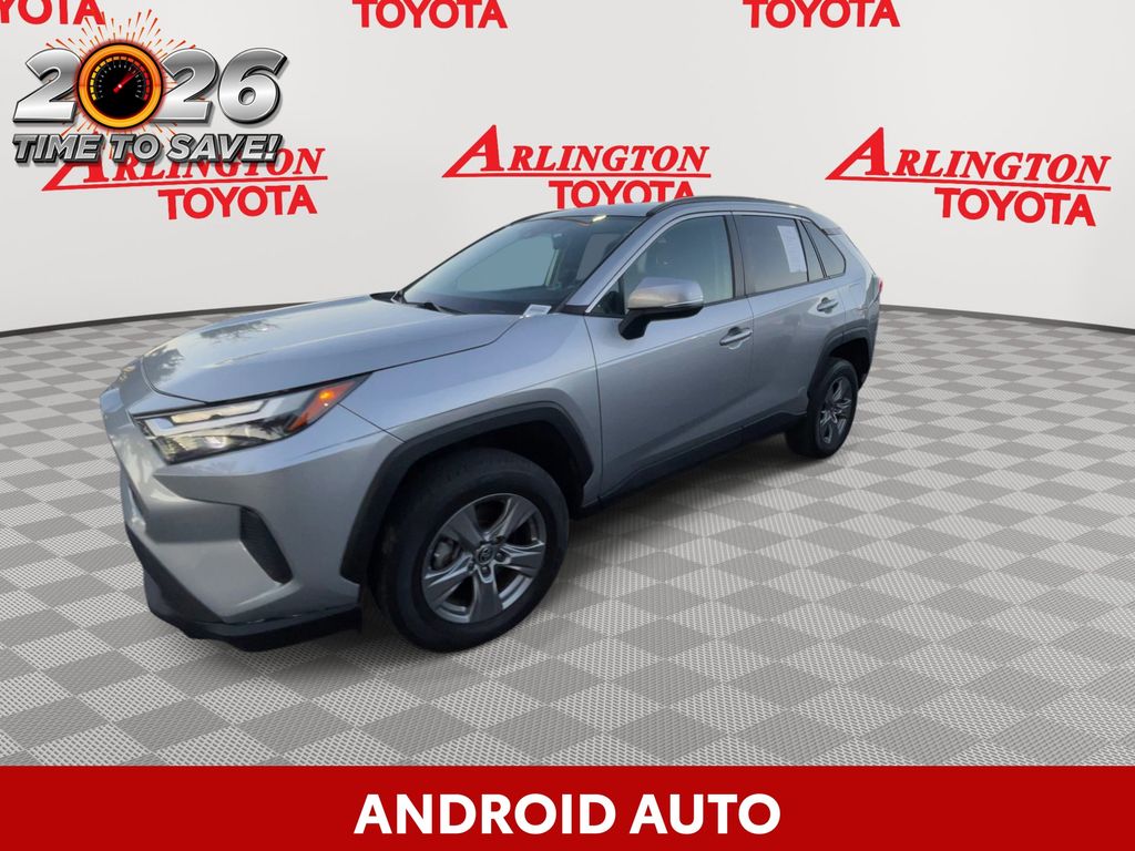 BACKUP CAMERA, BLUETOOTH HANDS FREE, ANDROID AUTO, APPLE CARPLAY, POWER SEATS, LOW MILES, LANE DEPARTURE, ADAPTIVE CRUISE CONTROL, NON SMOKER, RAV4 XLE, 4D Sport Utility, 2.5L 4-Cylinder DOHC Dual VVT-i, 8-Speed Automatic, FWD, Silver Sky Metallic, Black w/Fabric Seat Trim, ABS brakes, Electronic Stability Control, Four wheel independent suspension, Front dual zone A/C, Fully automatic headlights, Low tire pressure warning, Remote keyless entry, Steering wheel mounted audio controls, Turn signal indicator mirrors, 4-Wheel Disc Brakes, 6 Speakers, Air Conditioning, Alloy wheels, AM/FM radio: SiriusXM, AM/FM Stereo, Apple CarPlay/Android Auto, Auto High-beam Headlights, Automatic temperature control, Axle Ratio: 3.177, Brake assist, Bumpers: body-color, Delay-off headlights, Driver door bin, Driver vanity mirror, Dual front impact airbags, Dual front side impact airbags, Exterior Parking Camera Rear, Fabric Seat Trim, Front anti-roll bar, Front Bucket Seats, Front Center Armrest, Front reading lights, Heated door mirrors, Illuminated entry, Knee airbag, Occupant sensing airbag, Outside temperature display, Overhead airbag, Overhead console, Panic alarm, Passenger door bin, Passenger vanity mirror, Power door mirrors, Power driver seat, Power steering, Power windows, Radio data system, Rear anti-roll bar, Rear seat center armrest, Rear window defroster, Rear window wiper, Roof rack: rails only, Speed control, Speed-sensing steering, Split folding rear seat, Spoiler, Tachometer, Telescoping steering wheel, Tilt steering wheel, Traction control, Trip computer, Variably intermittent wipers, Wheels: 17" 5-Spoke Silver Alloy, RAV4 XLE, 4D Sport Utility, 2.5L 4-Cylinder DOHC Dual VVT-i, 8-Speed Automatic, FWD, Silver Sky Metallic, Black w/Fabric Seat Trim, ABS brakes, Electronic Stability Control, Four wheel independent suspension, Front dual zone A/C, Fully automatic headlights, Low tire pressure warning, Remote keyless entry, Steering wheel mounted audio controls, Turn signal indicator mirrors.