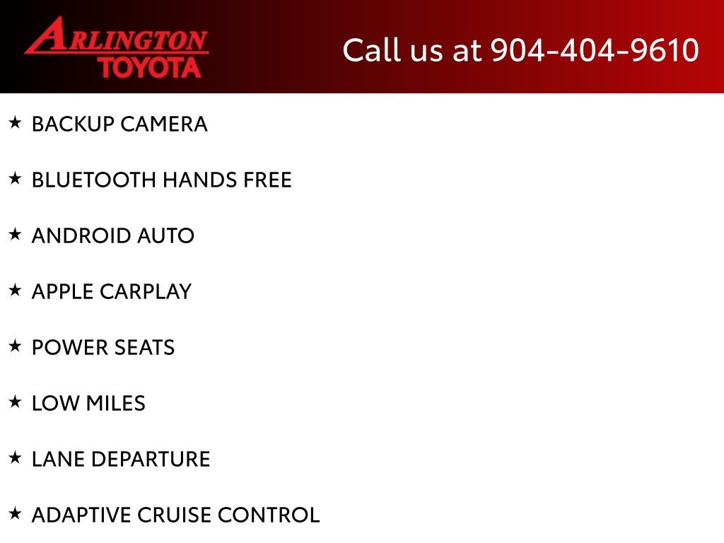 CALL FOR AVAILABILITY AND EXTRA OPTIONS ARLINGTON TOYOTA 904-721-3000.