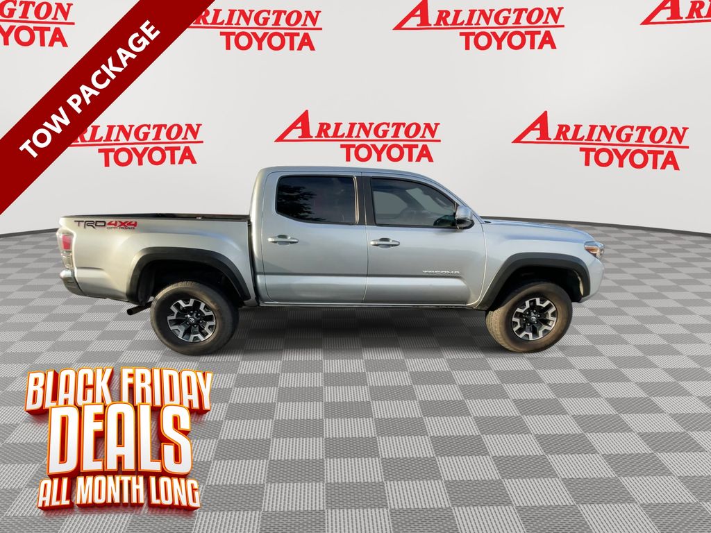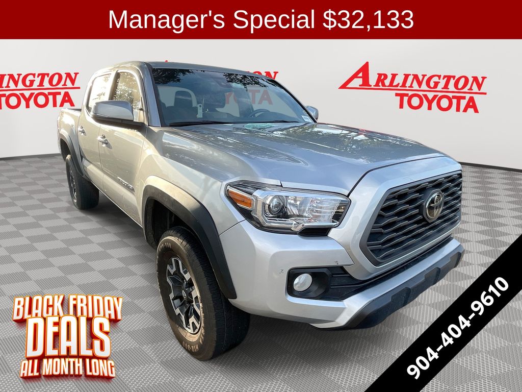 BACKUP CAMERA, BLUETOOTH HANDS FREE, ANDROID AUTO, APPLE CARPLAY, 4X4/FOUR WHEEL DRIVE, BED LINER, POWER SEATS, TOW PACKAGE, PUSH BUTTON START, LANE DEPARTURE, ADAPTIVE CRUISE CONTROL, NON SMOKER, Tacoma TRD Offroad V6 4X4, 4D Double Cab, 3.5L V6 PDI DOHC 24V LEV3-ULEV70 278hp, 6-Speed Automatic, 4WD, Celestial Silver Metallic, Cement Cloth, ABS brakes, Electronic Stability Control, Front dual zone A/C, Low tire pressure warning, Steering wheel mounted audio controls, Turn signal indicator mirrors, 120V/400W Deck Mounted AC Power, 6 Speakers, Air Conditioning, Alloy wheels, AM/FM radio: SiriusXM, Anti-whiplash front head restraints, Apple CarPlay/Android Auto, Auto High-beam Headlights, Auto-dimming Rear-View mirror, Auto-Dimming Rearview Mirror w/HomeLink, Automatic temperature control, Black Overfenders, Brake assist, Bumpers: body-color, Driver door bin, Dual front impact airbags, Dual front side impact airbags, Engine Immobilizer, Exterior Parking Camera Rear, Fabric Seat Trim (FD), Front anti-roll bar, Front Bucket Seats, Front Center Armrest, Front fog lights, Front reading lights, Front Seats, Front wheel independent suspension, Garage door transmitter: HomeLink, Heated door mirrors, Illuminated entry, Knee airbag, Leather Shift Knob, LED Daytime Running Lights & Fog Lights, Occupant sensing airbag, Outside temperature display, Overhead airbag, Overhead console, Panic alarm, Passenger door bin, Power Color Turn Mirror, Power door mirrors, Power driver seat, Power Sliding Rear Window w/Privacy Glass, Power steering, Power windows, Radio: AM/FM Radio, Rear step bumper, Remote keyless entry, Security system, Speed control, Speed-sensing steering, Split folding rear seat, Tachometer, Telescoping steering wheel, Tilt steering wheel, Traction control, TRD Off Road Package, Trip computer, Variably intermittent wipers, Wheels: 16" x 7J Machined Contrast Alloy, Tacoma TRD Offroad V6 4X4, 4D Double Cab, 3.5L V6 PDI DOHC 24V LEV3-ULEV70 278hp, 6-Speed Automatic, 4WD, Celestial Silver Metallic, Cement Cloth, ABS brakes, Electronic Stability Control, Front dual zone A/C, Low tire pressure warning, Steering wheel mounted audio controls, Turn signal indicator mirrors.