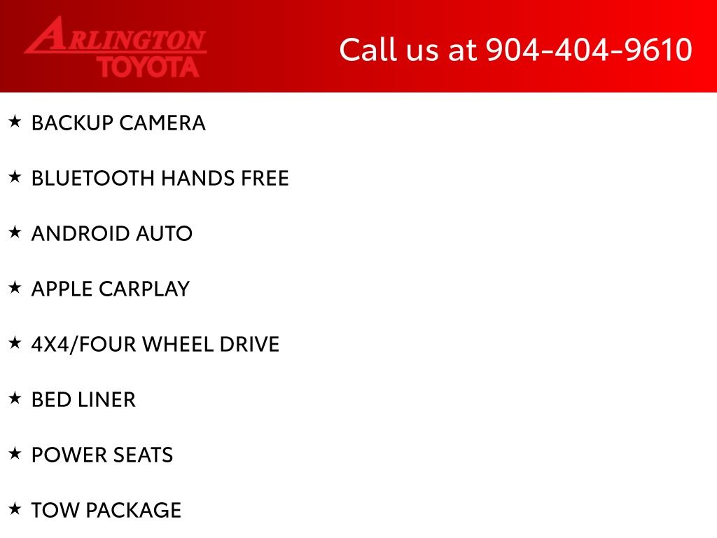 CALL FOR AVAILABILITY AND EXTRA OPTIONS ARLINGTON TOYOTA 904-721-3000.