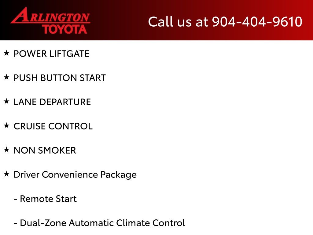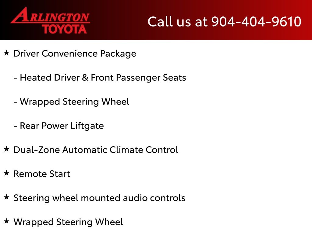 CALL FOR AVAILABILITY AND EXTRA OPTIONS ARLINGTON TOYOTA 904-721-3000.