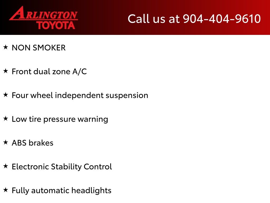 CALL FOR AVAILABILITY AND EXTRA OPTIONS ARLINGTON TOYOTA 904-721-3000.