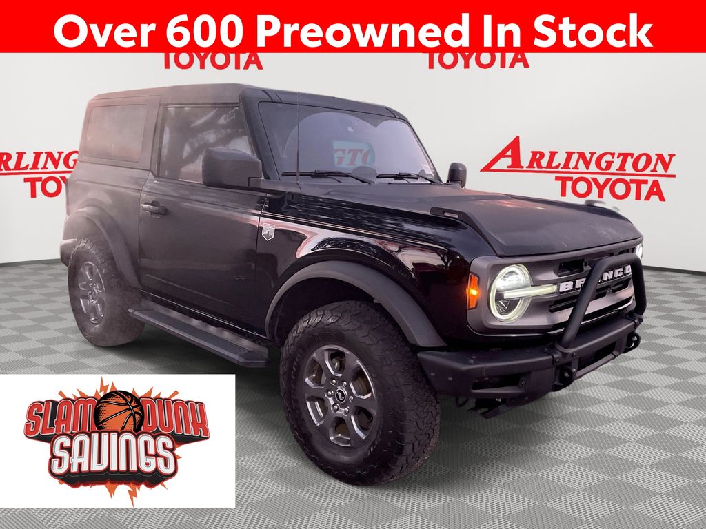 REMAINDER OF FACTORY WARRANTY STILL APPLIES, BACKUP CAMERA, BLUETOOTH HANDS FREE, ANDROID AUTO, APPLE CARPLAY, 4X4/FOUR WHEEL DRIVE, LOCAL TRADE IN, PUSH BUTTON START, CRUISE CONTROL, NON SMOKER, Bronco Big Bend 4x4, 2D Sport Utility, 2.7L EcoBoost V6, 10-Speed Automatic, 4WD, Shadow Black, Black Onyx Cloth, ABS brakes, Fully automatic headlights, Low tire pressure warning, Steering wheel mounted audio controls, 4-Wheel Disc Brakes, 7 Speakers, Air Conditioning, AM/FM radio: SiriusXM with 360L, AM/FM Stereo, Auto High-beam Headlights, Brake assist, Brush Guard, Compass, Convertible HardTop, Convertible roof lining, Delay-off headlights, Driver door bin, Driver vanity mirror, Dual front impact airbags, Dual front side impact airbags, Electronic Stability Control, Emergency communication system: 911 Assist, Exterior Parking Camera Rear, Ford Performance Heavy-Duty Modular Front Bumper, Front anti-roll bar, Front Bucket Seats, Front Center Armrest, Front reading lights, Front wheel independent suspension, Glass rear window, Heated door mirrors, Illuminated entry, Integrated roll-over protection, Keyless Entry Keypad, Occupant sensing airbag, Outside temperature display, Overhead airbag, Overhead console, Panic alarm, Passenger door bin, Passenger vanity mirror, Power door mirrors, Power steering, Power windows, Radio data system, Radio: 6 Speakers w/Subwoofer Delete, Rear window defroster, Rear window wiper, Remote keyless entry, Security system, SiriusXM Radio w/360L, Speed control, Split folding rear seat, SYNC 4, Tachometer, Telescoping steering wheel, Tilt steering wheel, Traction control, Trip computer, Variably intermittent wipers, Wheel Lock Kit (DIO), Bronco Big Bend 4x4, 2D Sport Utility, 2.7L EcoBoost V6, 10-Speed Automatic, 4WD, Shadow Black, Black Onyx Cloth, ABS brakes, Fully automatic headlights, Low tire pressure warning, Steering wheel mounted audio controls.