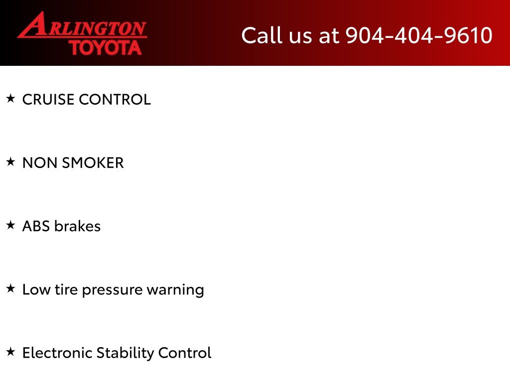 CALL FOR AVAILABILITY AND EXTRA OPTIONS ARLINGTON TOYOTA 904-721-3000.