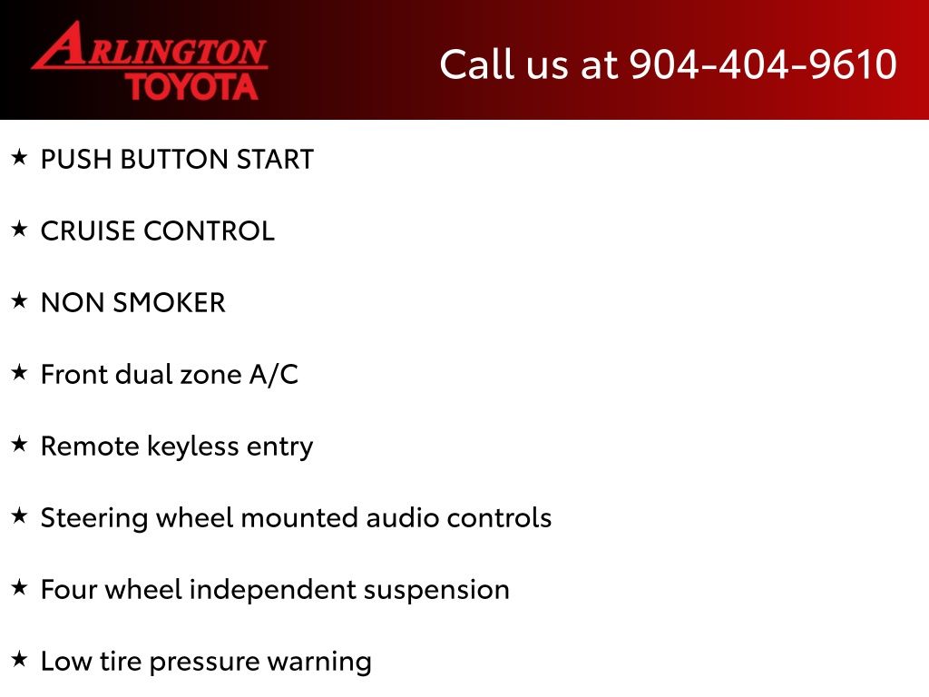 CALL FOR AVAILABILITY AND EXTRA OPTIONS ARLINGTON TOYOTA 904-721-3000.
