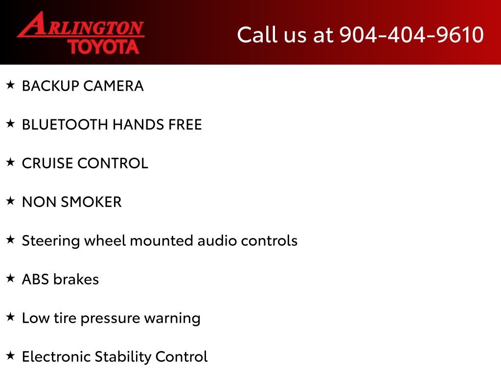 CALL FOR AVAILABILITY AND EXTRA OPTIONS ARLINGTON TOYOTA 904-721-3000.