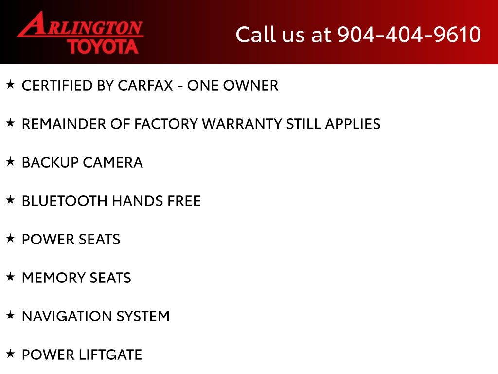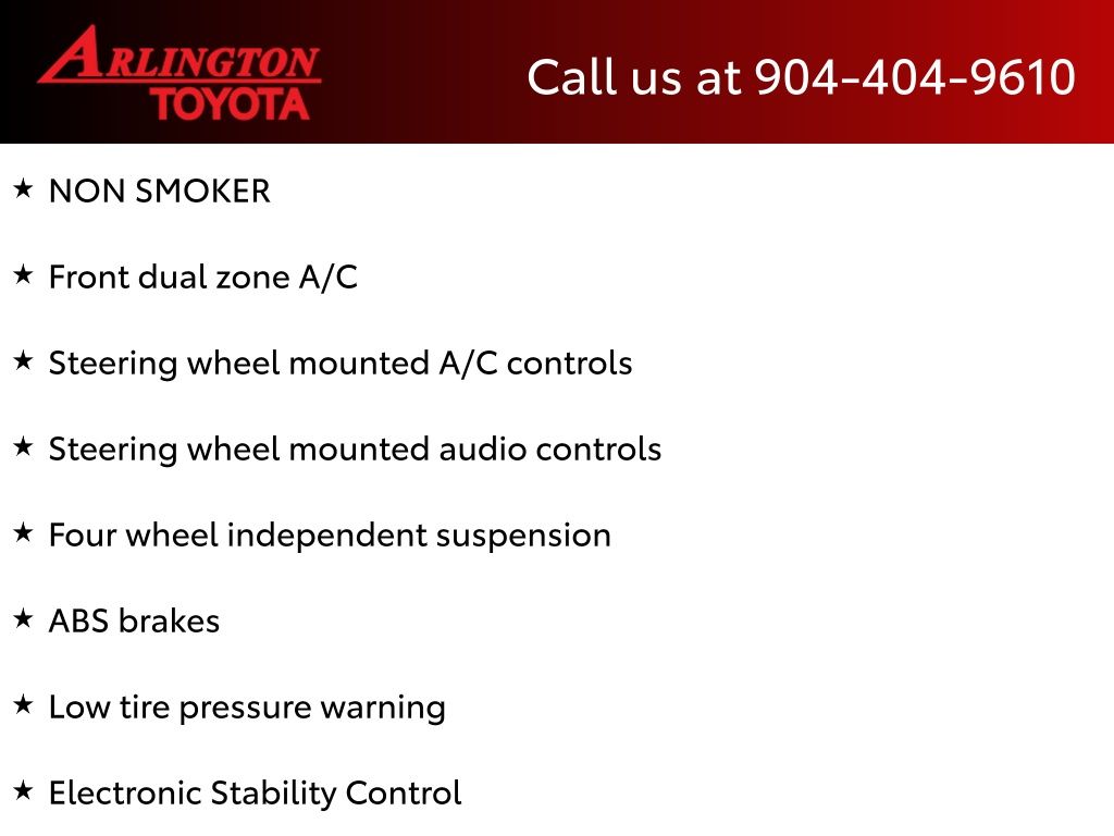 CALL FOR AVAILABILITY AND EXTRA OPTIONS ARLINGTON TOYOTA 904-721-3000.