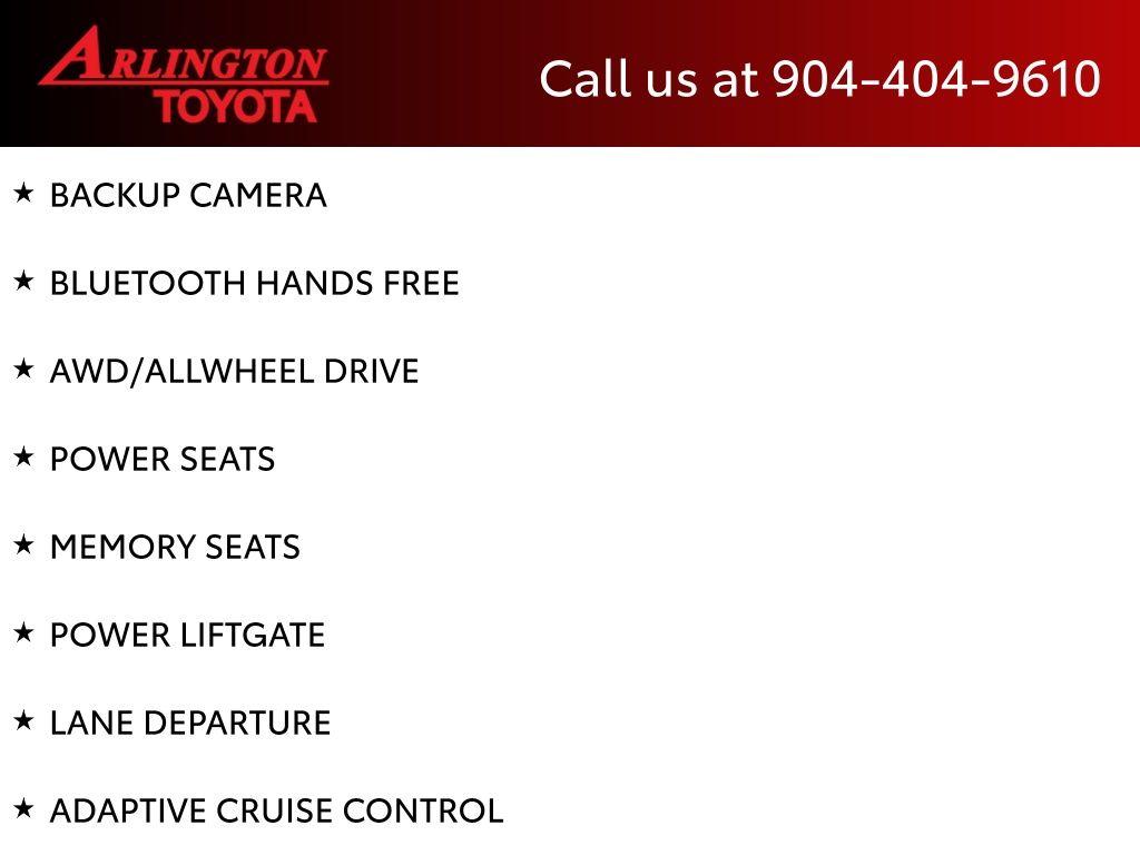 CALL FOR AVAILABILITY AND EXTRA OPTIONS ARLINGTON TOYOTA 904-721-3000.