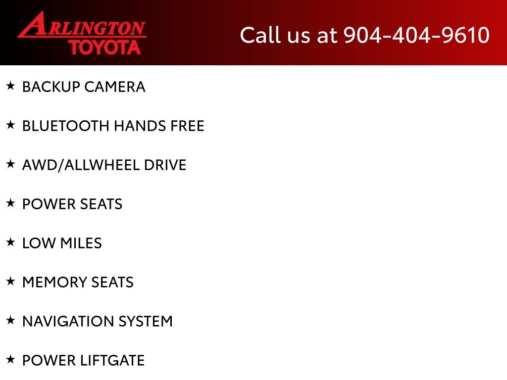CALL FOR AVAILABILITY AND EXTRA OPTIONS ARLINGTON TOYOTA 904-721-3000.