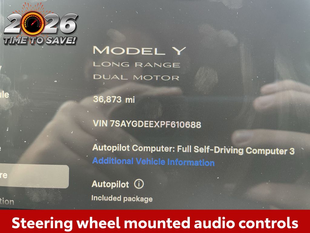 BACKUP CAMERA, BLUETOOTH HANDS FREE, AWD/ALLWHEEL DRIVE, POWER SEATS, LOW MILES, MEMORY SEATS, NAVIGATION SYSTEM, POWER LIFTGATE, LANE DEPARTURE, ADAPTIVE CRUISE CONTROL, NON SMOKER, Model Y Long Range AWD, 4D Sport Utility, Electric Motor, 1-Speed Automatic, AWD, Pearl White Multi-Coat, Black w/Vegan Leather Seat Trim, ABS brakes, Four wheel independent suspension, Front dual zone A/C, Low tire pressure warning, Steering wheel mounted A/C controls, Steering wheel mounted audio controls, 14 Speakers, 4-Wheel Disc Brakes, 5 Seat Interior, 9.0 Axle Ratio, Air Conditioning, Alloy wheels, Audio memory, Auto High-beam Headlights, Auto tilt-away steering wheel, Auto-dimming door mirrors, Auto-dimming Rear-View mirror, Automatic temperature control, Brake assist, Bumpers: body-color, Compass, Delay-off headlights, Driver door bin, Driver vanity mirror, Dual front impact airbags, Dual front side impact airbags, Electronic Stability Control, Emergency communication system, Exterior Parking Camera Rear, Front anti-roll bar, Front Bucket Seats, Front Center Armrest, Front fog lights, Front reading lights, Fully automatic headlights, Genuine wood dashboard insert, Heated door mirrors, Heated front seats, Heated rear seats, Heated steering wheel, HVAC memory, Illuminated entry, Knee airbag, Lane Departure Warning System, Memory seat, Navigation System, Occupant sensing airbag, Outside temperature display, Overhead airbag, Passenger door bin, Passenger vanity mirror, Power door mirrors, Power driver seat, Power Liftgate, Power passenger seat, Power steering, Power windows, Premium Audio System, Radio data system, Rain sensing wipers, Rear reading lights, Rear seat center armrest, Rear window defroster, Security system, Speed control, Speed-sensing steering, Split folding rear seat, Steering wheel memory, Telescoping steering wheel, Tilt steering wheel, Traction control, Trip computer, Variably intermittent wipers, Vegan Leather Seat Trim, Wheels: 19" x 9.5" Gemini, Model Y Long Range AWD, 4D Sport Utility, Electric Motor, 1-Speed Automatic, AWD, Pearl White Multi-Coat, Black w/Vegan Leather Seat Trim, ABS brakes, Four wheel independent suspension, Front dual zone A/C, Low tire pressure warning, Steering wheel mounted A/C controls, Steering wheel mounted audio controls.