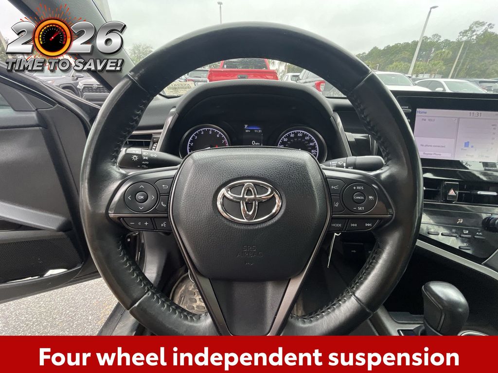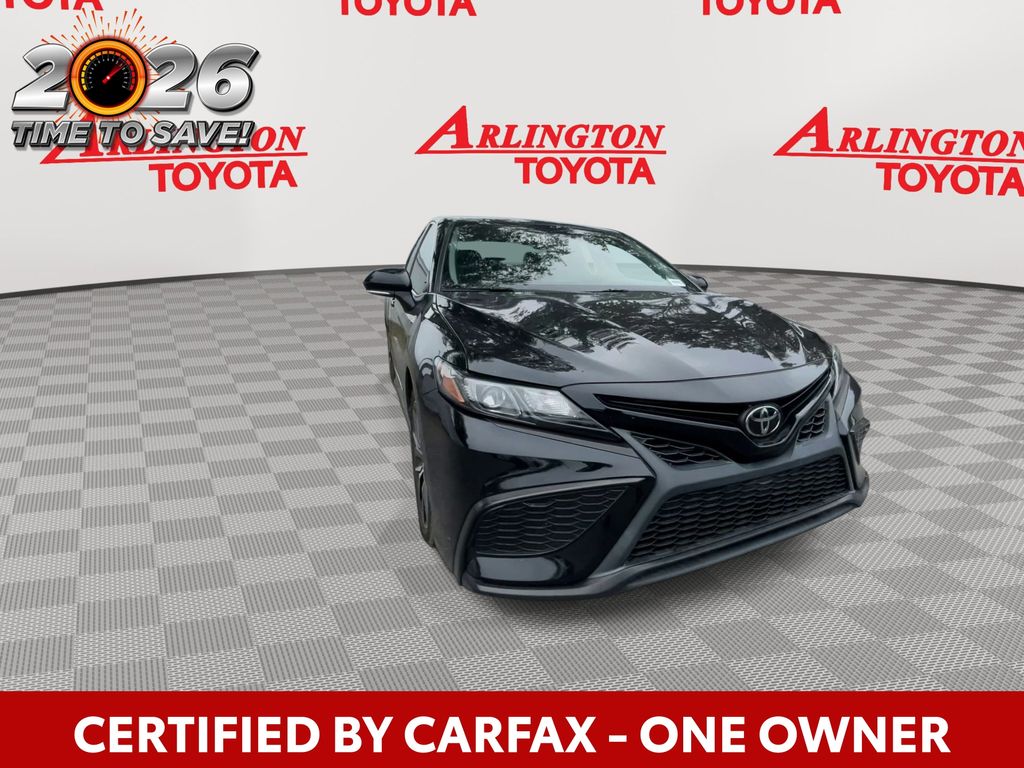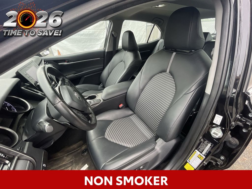 CERTIFIED BY CARFAX - ONE OWNER, REMAINDER OF FACTORY WARRANTY STILL APPLIES, BACKUP CAMERA, BLUETOOTH HANDS FREE, ANDROID AUTO, APPLE CARPLAY, POWER SEATS, LANE DEPARTURE, ADAPTIVE CRUISE CONTROL, NON SMOKER, Camry SE, 4D Sedan, 2.5L I4 DOHC 16V, 8-Speed Automatic, FWD, Midnight Black Metallic, Black w/Sport SofTex Seat Trim w/Fabric Inserts, ABS brakes, Electronic Stability Control, Four wheel independent suspension, Fully automatic headlights, Low tire pressure warning, Remote keyless entry, Steering wheel mounted audio controls, Turn signal indicator mirrors, 4-Wheel Disc Brakes, 6 Speakers, 8.0J x 18" Alloy Wheels, Air Conditioning, Alloy wheels, AM/FM radio: SiriusXM, Apple CarPlay/Android Auto, Auto High-beam Headlights, Automatic temperature control, Brake assist, Bumpers: body-color, Delay-off headlights, Driver door bin, Driver vanity mirror, Dual front impact airbags, Dual front side impact airbags, Exterior Parking Camera Rear, Front anti-roll bar, Front Bucket Seats, Front Center Armrest, Front dual zone A/C, Front reading lights, Heated door mirrors, Illuminated entry, Knee airbag, Leather steering wheel, Occupant sensing airbag, Outside temperature display, Overhead airbag, Overhead console, Panic alarm, Passenger door bin, Passenger vanity mirror, Power door mirrors, Power driver seat, Power steering, Power windows, Radio data system, Radio: Audio, Rear anti-roll bar, Rear seat center armrest, Rear side impact airbag, Rear window defroster, Security system, Speed control, Speed-sensing steering, Split folding rear seat, Spoiler, Sport SofTex Seat Trim w/Fabric Inserts, Tachometer, Telescoping steering wheel, Tilt steering wheel, Traction control, Trip computer, Variably intermittent wipers, Camry SE, 4D Sedan, 2.5L I4 DOHC 16V, 8-Speed Automatic, FWD, Midnight Black Metallic, Black w/Sport SofTex Seat Trim w/Fabric Inserts, ABS brakes, Electronic Stability Control, Four wheel independent suspension, Fully automatic headlights, Low tire pressure warning, Remote keyless entry, Steering wheel mounted audio controls, Turn signal indicator mirrors.