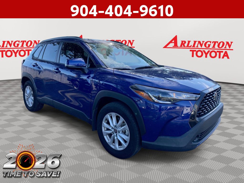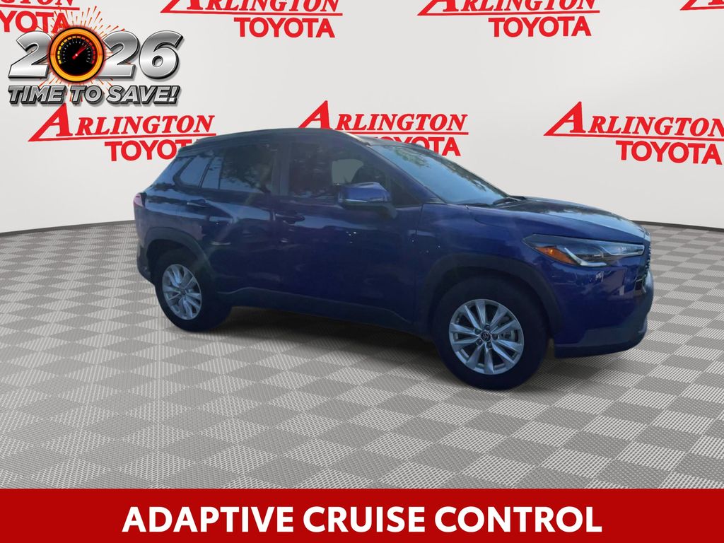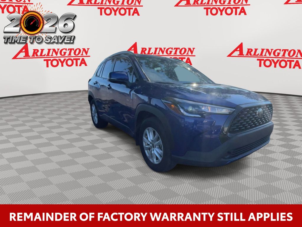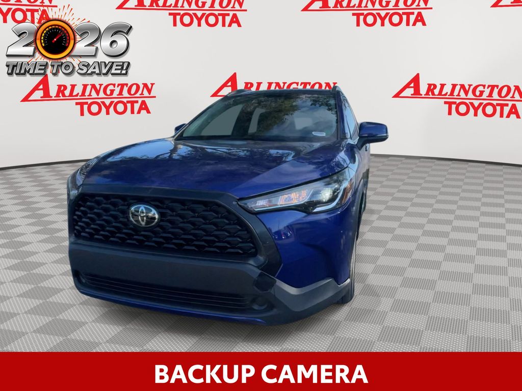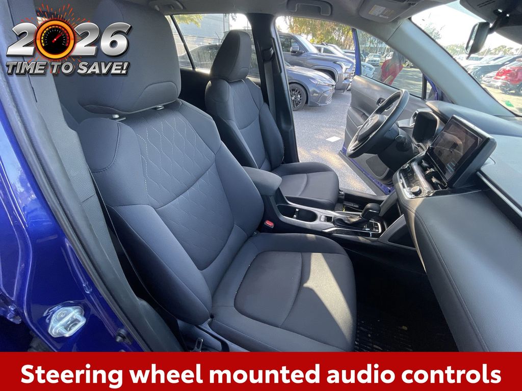 REMAINDER OF FACTORY WARRANTY STILL APPLIES, BACKUP CAMERA, BLUETOOTH HANDS FREE, LOCAL TRADE IN, PUSH BUTTON START, LANE DEPARTURE, ADAPTIVE CRUISE CONTROL, NON SMOKER, Corolla Cross LE, 4D Sport Utility, 2.0L I4 PDI DOHC 16V LEV3-SULEV30 169hp, CVT, FWD, Blue Crush Metallic, Black Cloth, ABS brakes, Electronic Stability Control, Fully automatic headlights, Low tire pressure warning, Steering wheel mounted audio controls, Turn signal indicator mirrors, 17" Alloy Wheels, 4-Wheel Disc Brakes, 4.014 Axle Ratio, 6 Speakers, Air Conditioning, Alloy wheels, AM/FM radio: SiriusXM, Auto High-beam Headlights, Automatic temperature control, Brake assist, Bumpers: body-color, Delay-off headlights, Driver door bin, Driver vanity mirror, Dual front impact airbags, Dual front side impact airbags, Exterior Parking Camera Rear, Fabric Seat Trim, Front anti-roll bar, Front Bucket Seats, Front Center Armrest, Front reading lights, Front wheel independent suspension, Heated door mirrors, Illuminated entry, Knee airbag, Leather steering wheel, Mudguards (TMS), Occupant sensing airbag, Outside temperature display, Overhead airbag, Panic alarm, Passenger door bin, Passenger vanity mirror, Power door mirrors, Power steering, Power windows, Radio data system, Radio: 8" Toyota Multimedia, Rear anti-roll bar, Rear side impact airbag, Rear window defroster, Rear window wiper, Remote keyless entry, Roof rack: rails only, Speed control, Split folding rear seat, Spoiler, Tachometer, Telescoping steering wheel, Tilt steering wheel, Traction control, Trip computer, Variably intermittent wipers, Corolla Cross LE, 4D Sport Utility, 2.0L I4 PDI DOHC 16V LEV3-SULEV30 169hp, CVT, FWD, Blue Crush Metallic, Black Cloth, ABS brakes, Electronic Stability Control, Fully automatic headlights, Low tire pressure warning, Steering wheel mounted audio controls, Turn signal indicator mirrors.