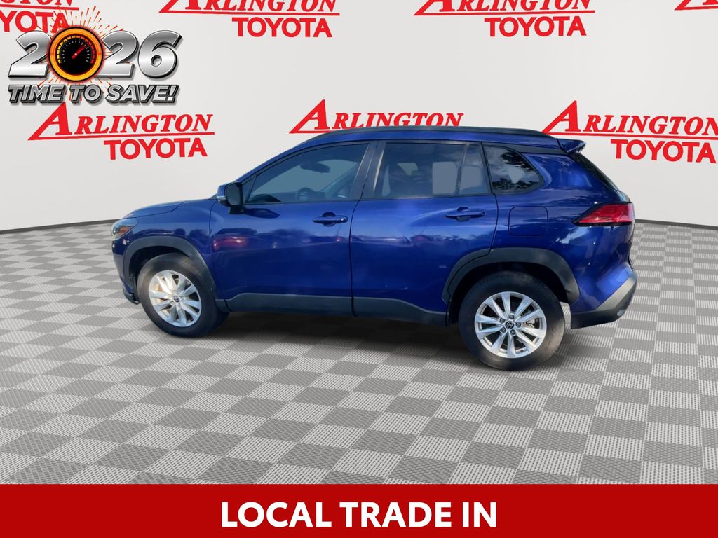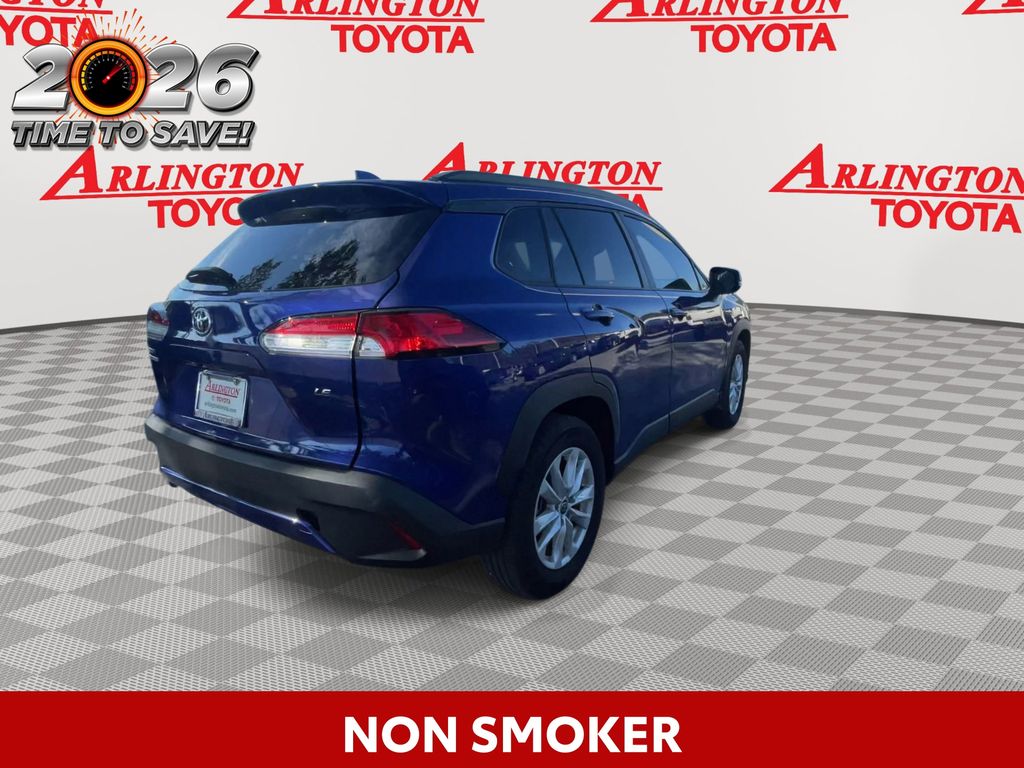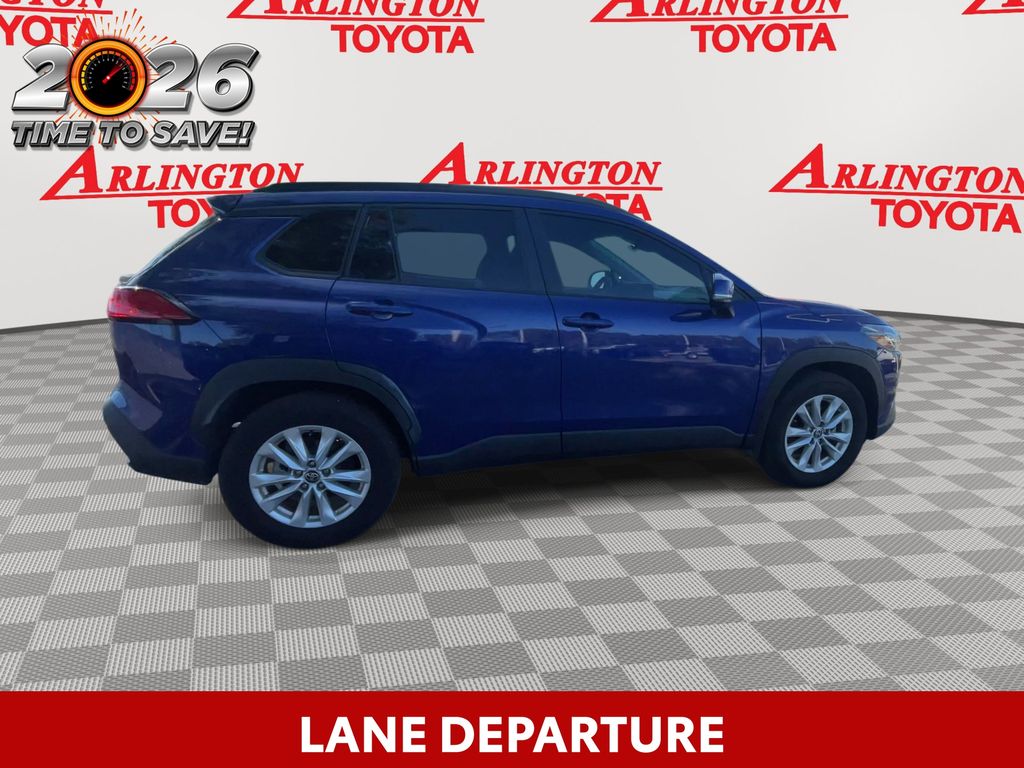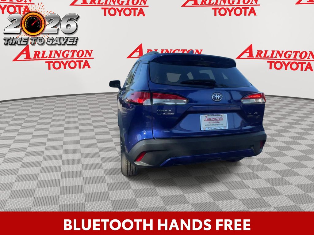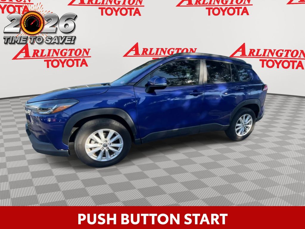 REMAINDER OF FACTORY WARRANTY STILL APPLIES, BACKUP CAMERA, BLUETOOTH HANDS FREE, LOCAL TRADE IN, PUSH BUTTON START, LANE DEPARTURE, ADAPTIVE CRUISE CONTROL, NON SMOKER, Corolla Cross LE, 4D Sport Utility, 2.0L I4 PDI DOHC 16V LEV3-SULEV30 169hp, CVT, FWD, Blue Crush Metallic, Black Cloth, ABS brakes, Electronic Stability Control, Fully automatic headlights, Low tire pressure warning, Steering wheel mounted audio controls, Turn signal indicator mirrors, 17" Alloy Wheels, 4-Wheel Disc Brakes, 4.014 Axle Ratio, 6 Speakers, Air Conditioning, Alloy wheels, AM/FM radio: SiriusXM, Auto High-beam Headlights, Automatic temperature control, Brake assist, Bumpers: body-color, Delay-off headlights, Driver door bin, Driver vanity mirror, Dual front impact airbags, Dual front side impact airbags, Exterior Parking Camera Rear, Fabric Seat Trim, Front anti-roll bar, Front Bucket Seats, Front Center Armrest, Front reading lights, Front wheel independent suspension, Heated door mirrors, Illuminated entry, Knee airbag, Leather steering wheel, Mudguards (TMS), Occupant sensing airbag, Outside temperature display, Overhead airbag, Panic alarm, Passenger door bin, Passenger vanity mirror, Power door mirrors, Power steering, Power windows, Radio data system, Radio: 8" Toyota Multimedia, Rear anti-roll bar, Rear side impact airbag, Rear window defroster, Rear window wiper, Remote keyless entry, Roof rack: rails only, Speed control, Split folding rear seat, Spoiler, Tachometer, Telescoping steering wheel, Tilt steering wheel, Traction control, Trip computer, Variably intermittent wipers, Corolla Cross LE, 4D Sport Utility, 2.0L I4 PDI DOHC 16V LEV3-SULEV30 169hp, CVT, FWD, Blue Crush Metallic, Black Cloth, ABS brakes, Electronic Stability Control, Fully automatic headlights, Low tire pressure warning, Steering wheel mounted audio controls, Turn signal indicator mirrors.