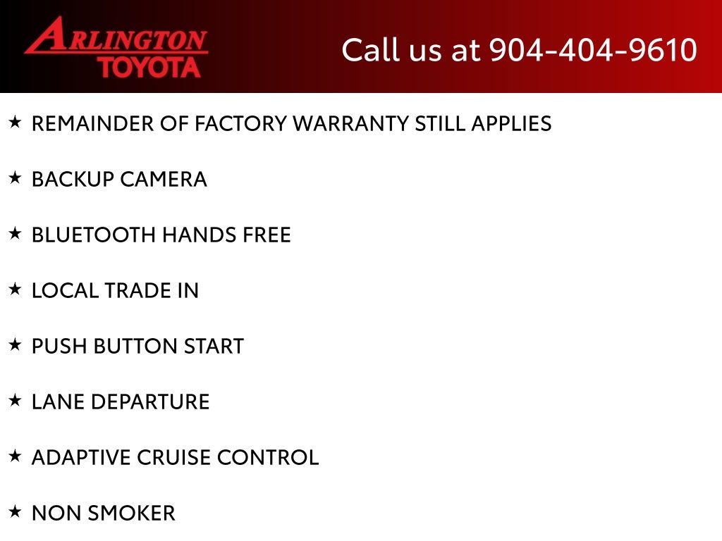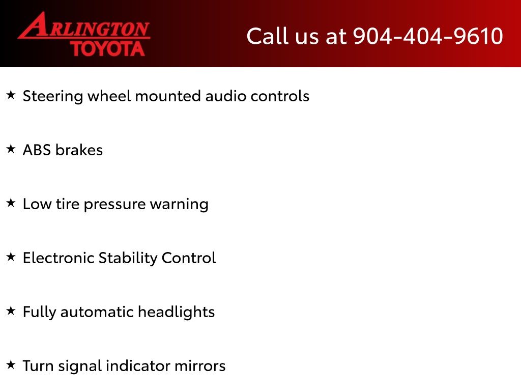 CALL FOR AVAILABILITY AND EXTRA OPTIONS ARLINGTON TOYOTA 904-721-3000.