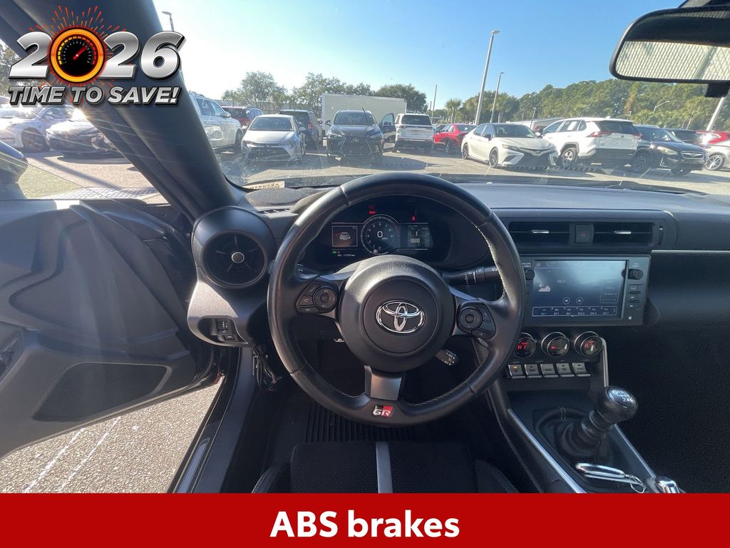 REMAINDER OF FACTORY WARRANTY STILL APPLIES, BACKUP CAMERA, BLUETOOTH HANDS FREE, ANDROID AUTO, APPLE CARPLAY, PUSH BUTTON START, LANE DEPARTURE, ADAPTIVE CRUISE CONTROL, NON SMOKER, GR86 Premium, 2D Coupe, 2.4L I4 DOHC, Close-Ratio 6-Speed Manual, RWD, Raven, Black w/Fabric Seat Trim, ABS brakes, Electronic Stability Control, Front dual zone A/C, Fully automatic headlights, Low tire pressure warning, Steering wheel mounted audio controls, 4-Wheel Disc Brakes, 8 Speakers, Air Conditioning, Alcantara Leather Seat Trim, All Weather Mat Package (TMS), Alloy wheels, AM/FM radio: SiriusXM, Apple CarPlay/Android Auto, Automatic temperature control, Brake assist, Bumpers: body-color, Clear Rear Bumper Applique (TMS), Delay-off headlights, Door Edge Guards (TMS), Driver door bin, Driver vanity mirror, Dual front impact airbags, Dual front side impact airbags, Exterior Parking Camera Rear, Four wheel independent suspension, Front anti-roll bar, Front Bucket Seats, Front reading lights, Heated door mirrors, Heated front seats, Heated Sport Bucket Seats, Illuminated entry, Knee airbag, Leather Shift Knob, Leather steering wheel, Occupant sensing airbag, Outside temperature display, Overhead airbag, Panic alarm, Passenger door bin, Passenger vanity mirror, Power door mirrors, Power steering, Power windows, Radio data system, Radio: AM/FM/HD Audio System, Rear anti-roll bar, Rear window defroster, Remote keyless entry, Security system, Speed control, Spoiler, Tachometer, Telescoping steering wheel, Tilt steering wheel, Traction control, Trip computer, Variably intermittent wipers, Wheels: 7.5" x 18" Twin 10-Spoke Matte Black Alloy, GR86 Premium, 2D Coupe, 2.4L I4 DOHC, Close-Ratio 6-Speed Manual, RWD, Raven, Black w/Fabric Seat Trim, ABS brakes, Electronic Stability Control, Front dual zone A/C, Fully automatic headlights, Low tire pressure warning, Steering wheel mounted audio controls.