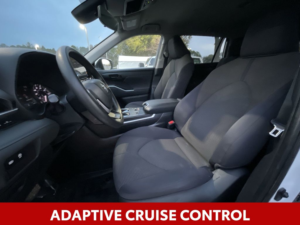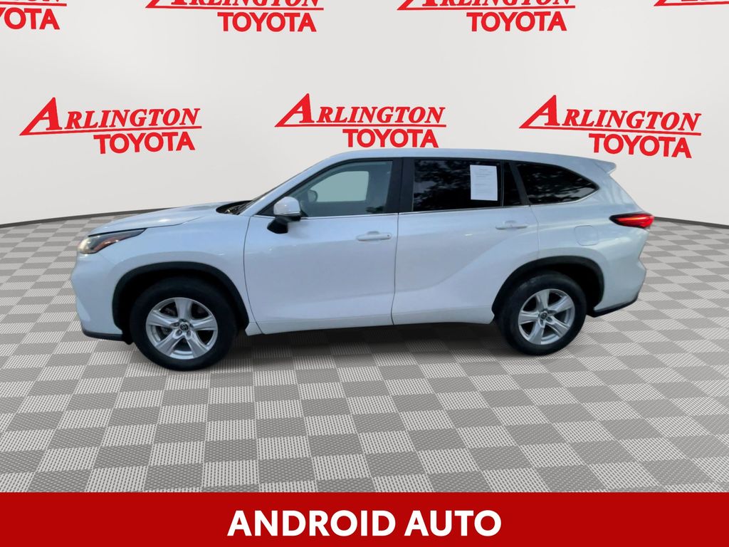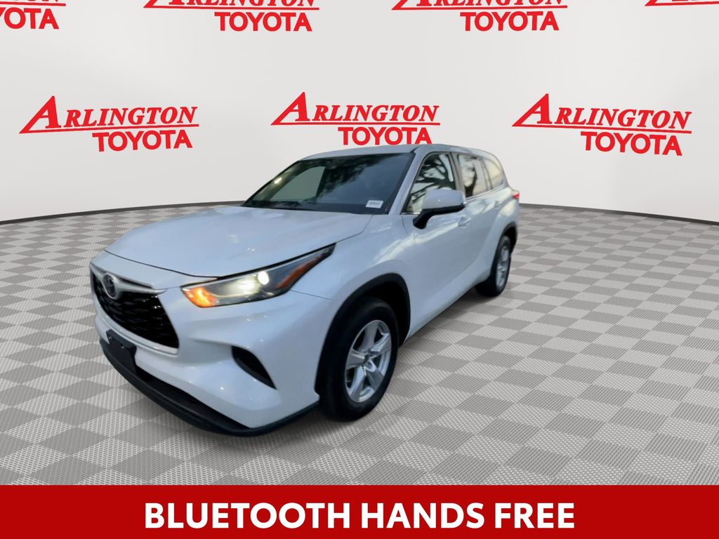REMAINDER OF FACTORY WARRANTY STILL APPLIES, BACKUP CAMERA, BLUETOOTH HANDS FREE, ANDROID AUTO, APPLE CARPLAY, POWER SEATS, THIRD ROW SEATING, PUSH BUTTON START, LANE DEPARTURE, ADAPTIVE CRUISE CONTROL, NON SMOKER, Highlander L, 4D Sport Utility, 2.4L I4 PDI Turbocharged DOHC 16V LEV3-SULEV30 265hp, 8-Speed Automatic, FWD, Wind Chill Pearl, Black Cloth, ABS brakes, Electronic Stability Control, Four wheel independent suspension, Front dual zone A/C, Fully automatic headlights, Low tire pressure warning, Remote keyless entry, Steering wheel mounted audio controls, Turn signal indicator mirrors, 18" Painted Alloy Wheels, 3.329 Axle Ratio, 3rd row seats: split-bench, 4-Wheel Disc Brakes, 6 Speakers, Air Conditioning, All Weather Floor & Cargo Liner (TMS), Alloy wheels, AM/FM radio: SiriusXM, Apple CarPlay/Android Auto, Auto High-beam Headlights, Automatic temperature control, Brake assist, Bumpers: body-color, Cargo Cover (TMS), Chrome Rear Bumper Protector (TMS), Delay-off headlights, Door Edge Guards (TMS), Driver door bin, Driver vanity mirror, Dual front impact airbags, Dual front side impact airbags, Engine Immobilizer, Exterior Parking Camera Rear, Fabric Seat Trim, Frameless Mirror w/HomeLink (TMS), Front anti-roll bar, Front Bucket Seats, Front Center Armrest, Front reading lights, Heated door mirrors, Illuminated Door Sills (TMS), Illuminated entry, Knee airbag, L Grade Package, Occupant sensing airbag, Outside temperature display, Overhead airbag, Overhead console, Panic alarm, Passenger door bin, Passenger vanity mirror, Power door mirrors, Power driver seat, Power steering, Power windows, Radio: 8" Toyota Audio Multimedia, Rear air conditioning, Rear anti-roll bar, Rear reading lights, Rear seat center armrest, Rear window defroster, Rear window wiper, Reclining 3rd row seat, Speed control, Speed-sensing steering, Split folding rear seat, Spoiler, Tachometer, Telescoping steering wheel, Tilt steering wheel, Traction control, Trip computer, Variably intermittent wipers, Wheel Locks (TMS), Highlander L, 4D Sport Utility, 2.4L I4 PDI Turbocharged DOHC 16V LEV3-SULEV30 265hp, 8-Speed Automatic, FWD, Wind Chill Pearl, Black Cloth, ABS brakes, Electronic Stability Control, Four wheel independent suspension, Front dual zone A/C, Fully automatic headlights, Low tire pressure warning, Remote keyless entry, Steering wheel mounted audio controls, Turn signal indicator mirrors.