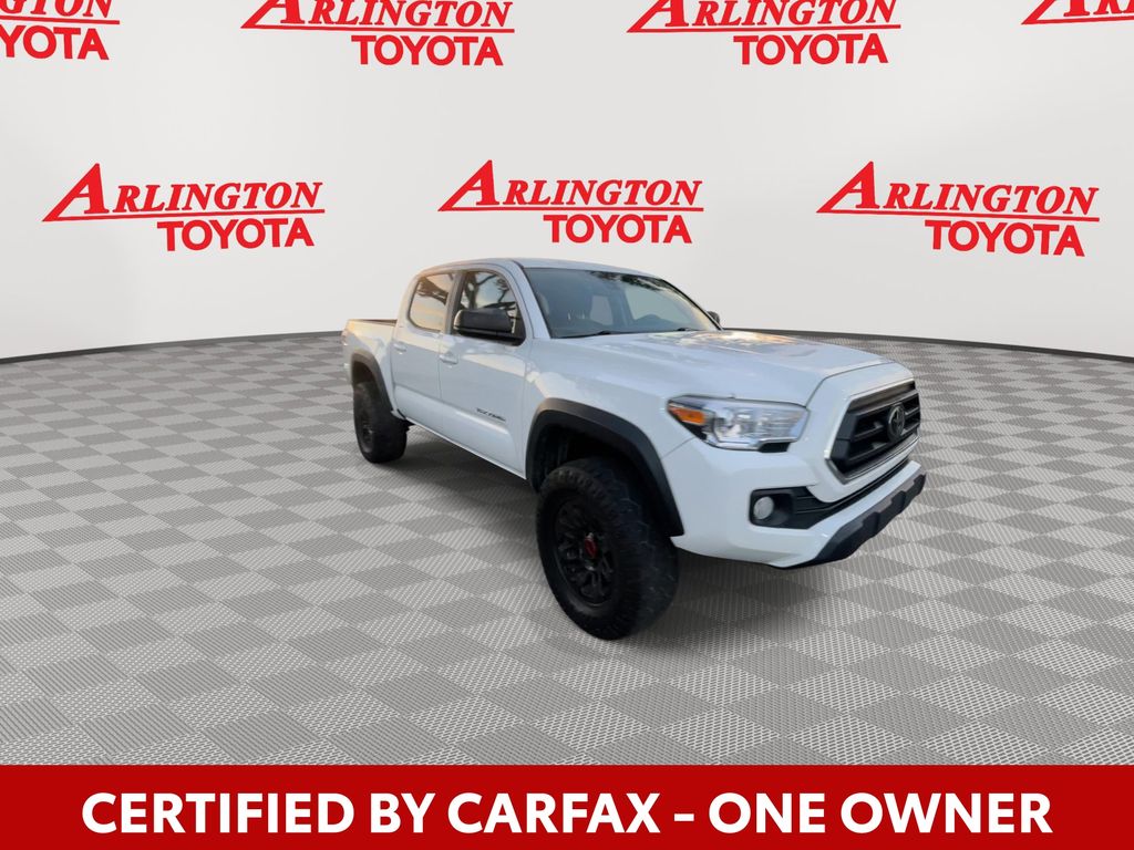 CERTIFIED BY CARFAX - ONE OWNER, BACKUP CAMERA, BLUETOOTH HANDS FREE, ANDROID AUTO, APPLE CARPLAY, BED LINER, LANE DEPARTURE, ADAPTIVE CRUISE CONTROL, NON SMOKER, Tacoma SR5 V6, 4D Double Cab, 3.5L V6 PDI DOHC 24V LEV3-ULEV70 278hp, 6-Speed Automatic, RWD, Ice Cap, Cement Cloth, Auto-Dimming Inside Rear-View Mirror, Black Headlamp Bezel, Black Overfenders, Daytime Running Lamps, Radio: Premium Audio w/Dynamic Navigation, Rear Parking Assist Sonar, SR5 Parking Sonar & Navigation Package, SX Package, Wheels: 16" Black Alloy, 6 Speakers, ABS brakes, Air Conditioning, Alloy wheels, AM/FM radio: SiriusXM, Anti-whiplash front head restraints, Apple CarPlay/Android Auto, Auto High-beam Headlights, Auto-dimming Rear-View mirror, Automatic temperature control, Axle Ratio: 3.91, Brake assist, Bumpers: body-color, Color-Keyed Rear Bumper, Driver door bin, Dual front impact airbags, Dual front side impact airbags, Electronic Stability Control, Emergency communication system: Safety Connect (1-year trial), Exterior Parking Camera Rear, Fabric Seat Trim, Front anti-roll bar, Front Bucket Seats, Front Center Armrest, Front dual zone A/C, Front fog lights, Front reading lights, Front Seats, Front wheel independent suspension, Heated door mirrors, Illuminated entry, Knee airbag, Low tire pressure warning, Occupant sensing airbag, Outside temperature display, Overhead airbag, Overhead console, Panic alarm, Passenger door bin, Power door mirrors, Power driver seat, Power steering, Power windows, Radio: Audio, Rear step bumper, Remote keyless entry, Speed control, Speed-sensing steering, Split folding rear seat, Steering wheel mounted audio controls, Tachometer, Telescoping steering wheel, Tilt steering wheel, Traction control, Trip computer, Variably intermittent wipers, Wheels: 16" Dark Gray Alloy, Tacoma SR5 V6, 4D Double Cab, 3.5L V6 PDI DOHC 24V LEV3-ULEV70 278hp, 6-Speed Automatic, RWD, Ice Cap, Cement Cloth, Auto-Dimming Inside Rear-View Mirror, Black Headlamp Bezel, Black Overfenders, Daytime Running Lamps, Radio: Premium Audio w/Dynamic Navigation, Rear Parking Assist Sonar, SR5 Parking Sonar & Navigation Package, SX Package, Wheels: 16" Black Alloy.